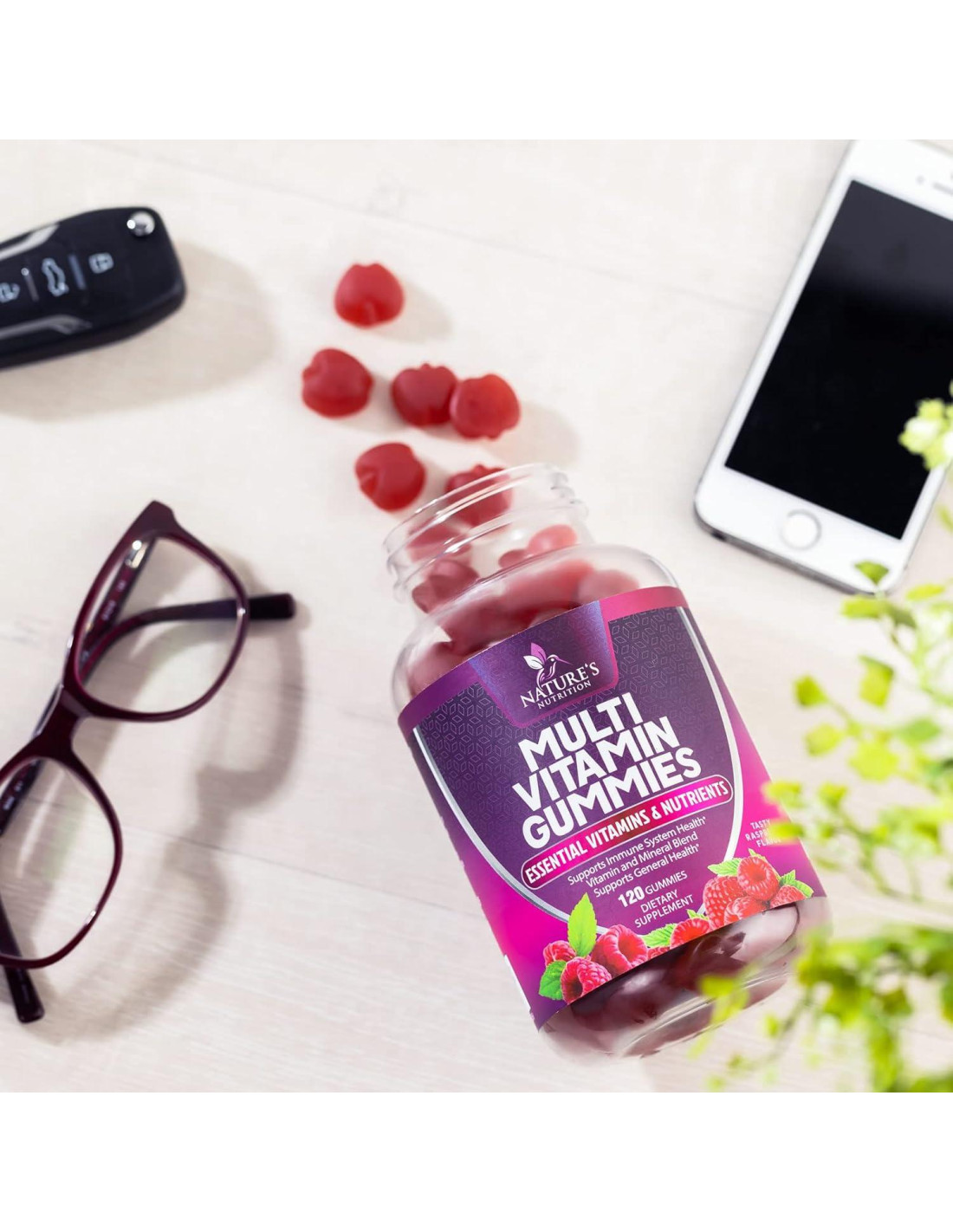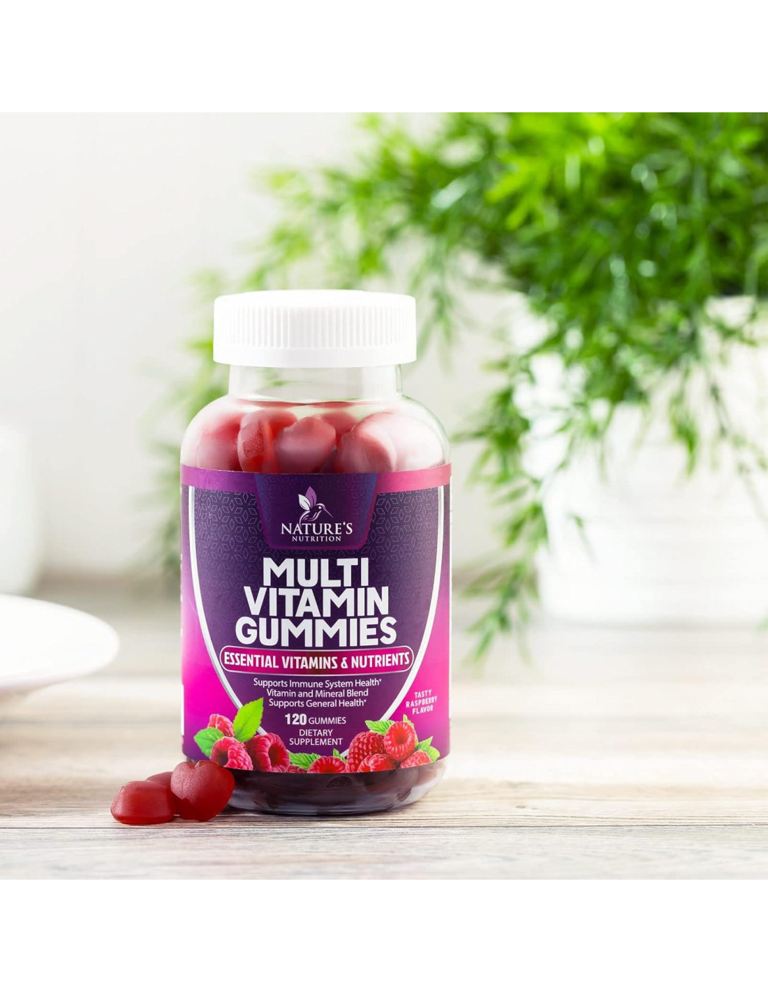- SOPORTE MULTIVITAMÍNICO DIARIO COMPLETO: Las gomitas multivitamínicas de Nature's Nutrition para adultos ofrecen vitaminas y minerales esenciales incluyendo vitaminas A, C, D3, E, B6, B12, Zinc y poderosos antioxidantes para un soporte vitamínico diario integral y soporte inmunológico; ideal como multivitamínico diario para hombres y mujeres para ayudar a apoyar la energía y el bienestar.