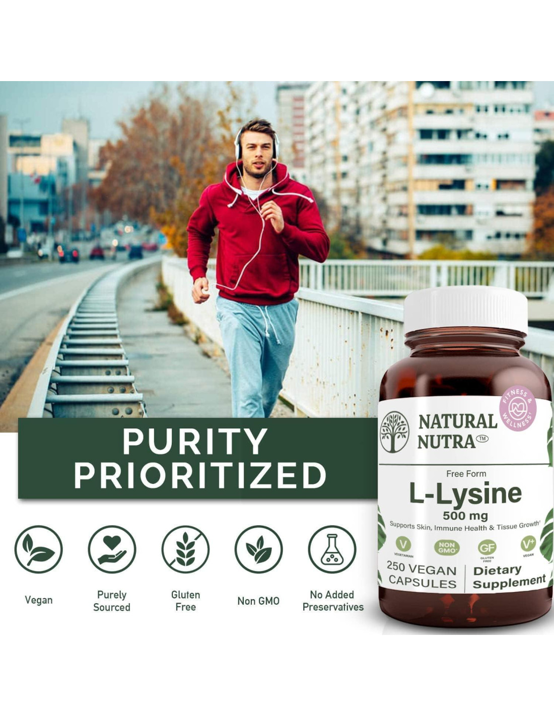 - Apoya una Recuperación Más Rápida Después del Entrenamiento y Aumenta la Inmunidad- Nuestra formulación de L-lisina totalmente natural es necesaria para el cuidado de los músculos. Su cuerpo utiliza L-lisina en la síntesis de proteínas, lo cual es importante ya que los entrenamientos causan pequeñas rupturas en sus músculos.