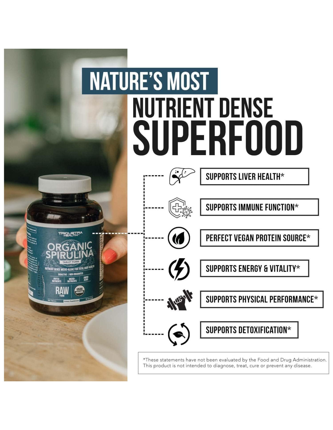 - ESPIRULINA MÁS DENSAMENTE NUTRITIVA Y POTENTE: Nuestra Espirulina tiene el perfil nutricional más robusto y potente, brindándote la máxima nutrición con cada tableta. Consulta nuestras imágenes para un desglose completo del contenido nutricional. ÚNICA ESPIRULINA CERTIFICADA CRUDA: Estamos orgullosos de ofrecer la única Espirulina certificada cruda. Esto significa que nuestra Espirulina mantiene su robusta actividad enzimática "viva", haciendo que sus nutrientes sean más biodisponibles.
