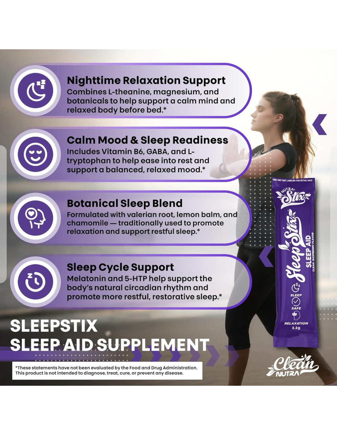 - Presentamos la Mezcla Clean Sleep Stix - Nuestra ventaja propietaria combina extracto de melisa, zinc, suplementos de gaba, potente 5 htp, myo-inositol, manzanilla y melatonina líquida con botánicos sin valeriana para crear un ritual holístico anti ansiedad. Deshazte del polvo de glicina disperso o de un bolígrafo de melatonina; cada paquete de tamaño de viaje proporciona factores de relajación sinérgicos que fomentan patrones de sueño saludables, estado de ánimo equilibrado y función del sistema nervioso calmada para un reinicio nocturno de cuerpo completo.