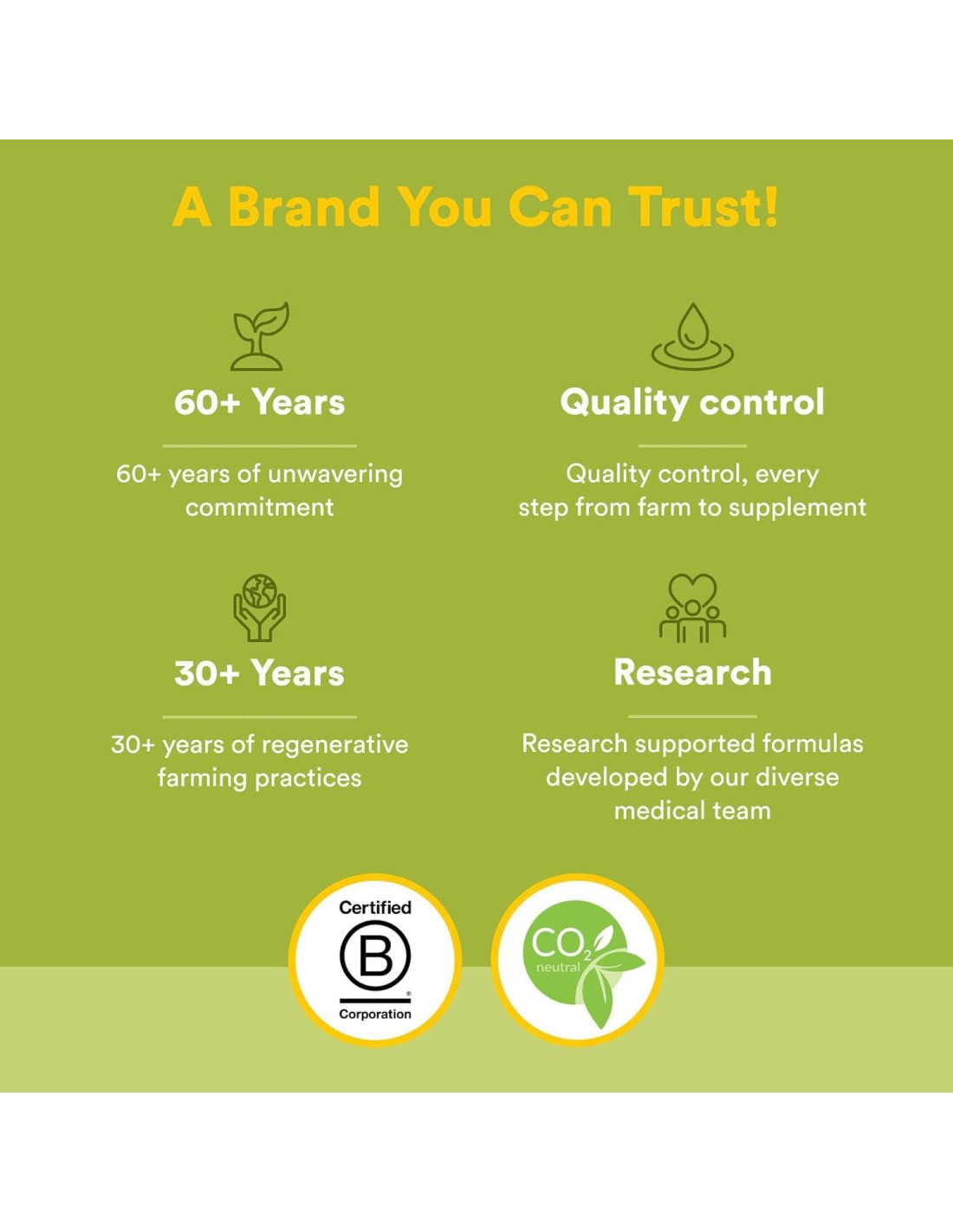 - Certificado por terceros: Probado de forma independiente para OGM y más de 800 contaminantes utilizando tecnología avanzada como la espectrometría de masas para garantizar pureza y potencia