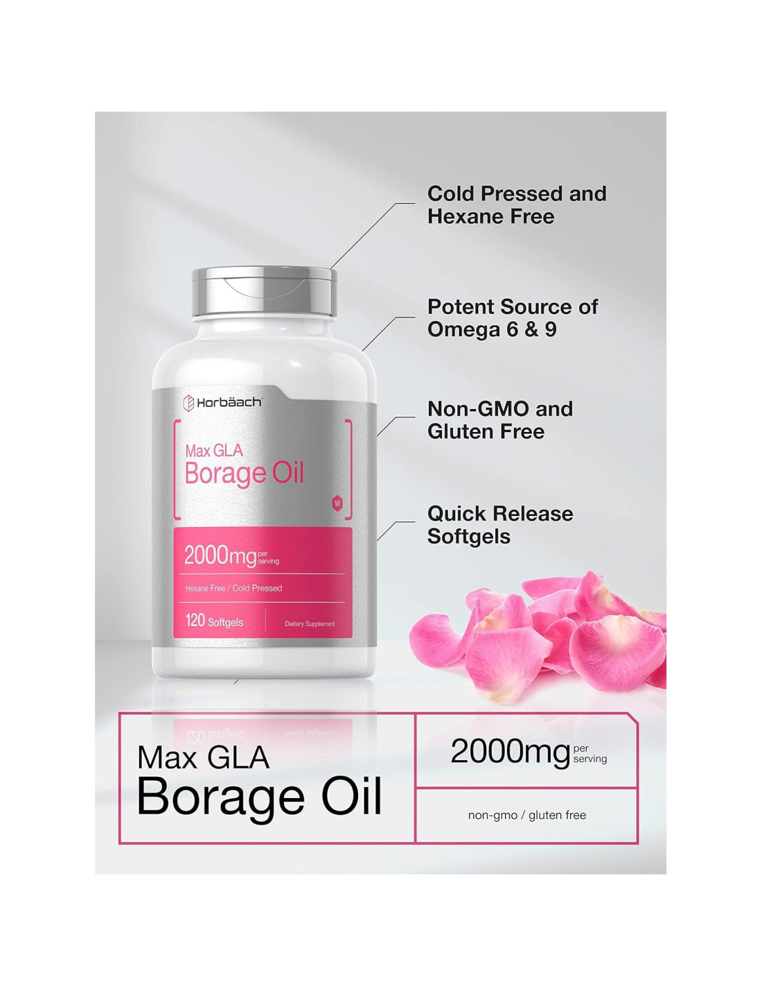 - ABSORCIÓN ÓPTIMA: Proporciona 2000 mg de Aceite de Borraja Max GLA en dos gelatinas blandas de liberación rápida diarias
