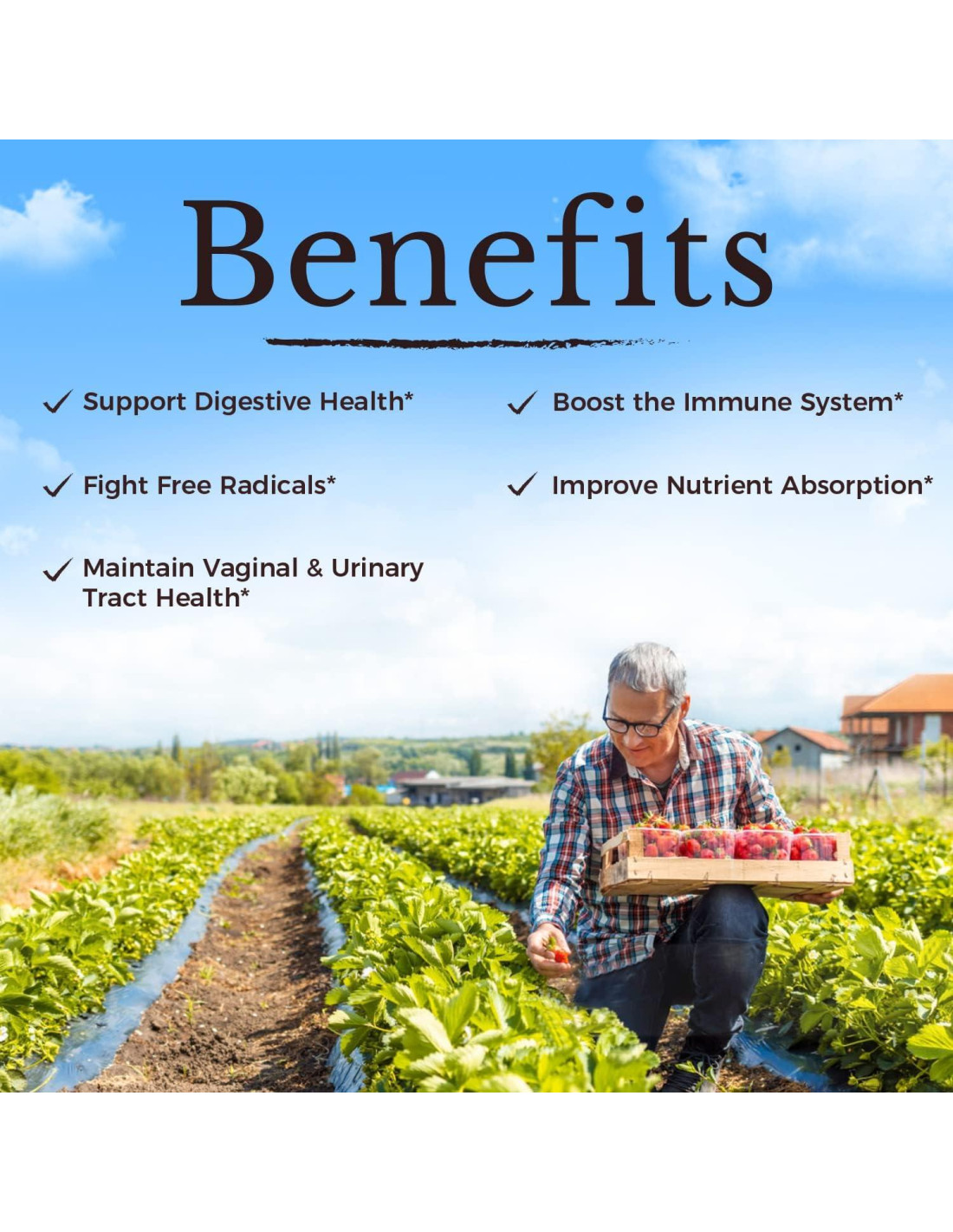 - Cuida la Salud de las Mujeres*: El arándano se considera un superalimento debido a su alto contenido de nutrientes y antioxidantes. El extracto de arándano orgánico se añade en esta fórmula con poderosos antioxidantes para ayudar a proteger tu cuerpo de los radicales libres.* Ayuda a apoyar la salud inmune y la desintoxicación y protección del tracto urinario sin el azúcar y las calorías.*
