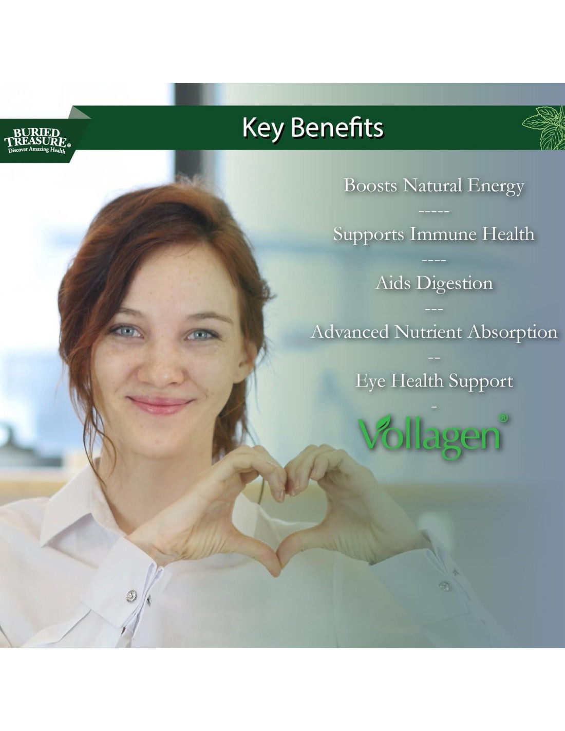 - Mejorado con Vollagen para la Salud de la Piel y las Articulaciones: Incluye 1500mg de Vollagen, un complejo de colágeno a base de plantas, ayudando a apoyar la elasticidad de la piel, la salud del cabello y la movilidad articular con 18 aminoácidos esenciales.