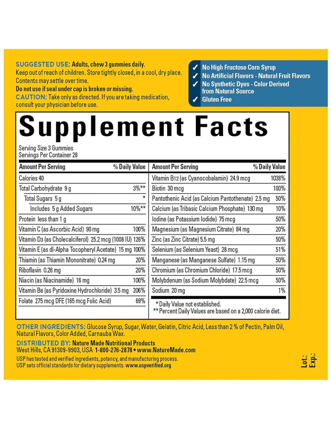 - Suplemento de apoyo nutricional: contiene una botella de 84 unidades de Nature Made Advanced Multivitamin Gummies 50+ para Él para un suministro de 28 días