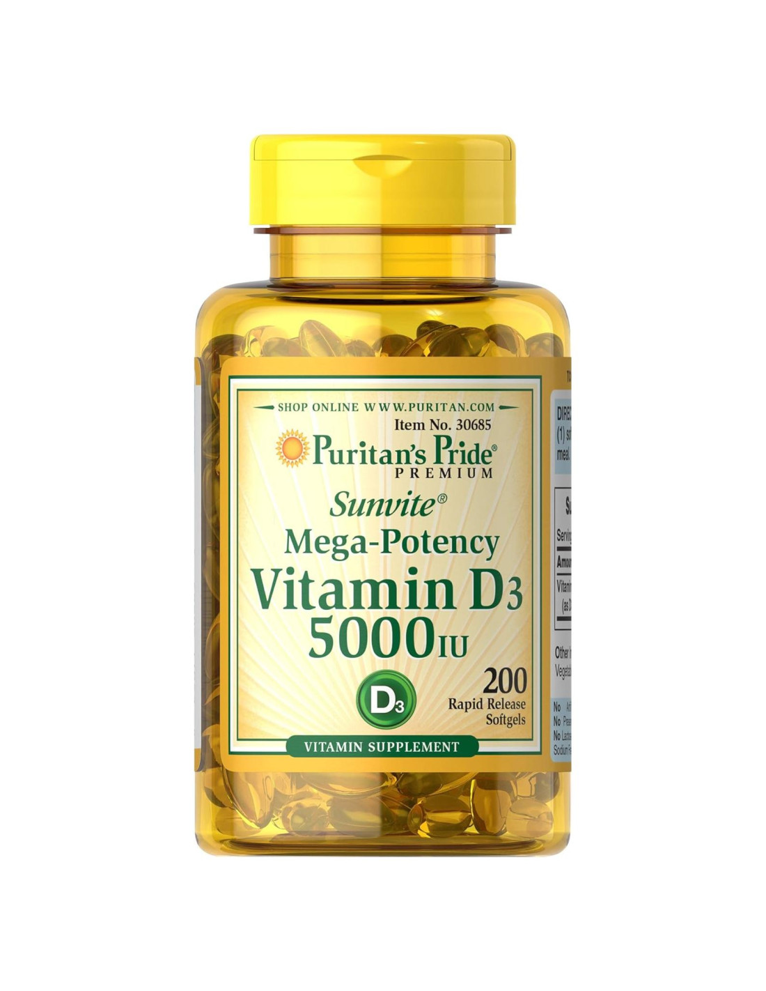 La vitamina D3 de Puritan's Pride está elaborada expertamente para proporcionar un apoyo inmunológico esencial y una fuerte salud ósea al ayudar en la absorción de calcio y fósforo. Nuestras gelatinas de liberación rápida están diseñadas para una absorción óptima, utilizando vitamina D3, la misma forma que su cuerpo produce naturalmente cuando se expone a la luz solar, que es más biodisponible que la vitamina D2. Y si estás entrenando duro, la vitamina D puede ayudar en la recuperación muscular, ayudándote a recuperarte y rendir al máximo después de entrenamientos difíciles. Obtén 125 mcg (5000 UI) de vitamina D3 con 200 gelatinas suaves en total para apoyar tu viaje de bienestar. Estas declaraciones no han sido evaluadas por la Administración de Alimentos y Medicamentos. Este producto no está destinado a diagnosticar, tratar, curar o prevenir ninguna enfermedad.