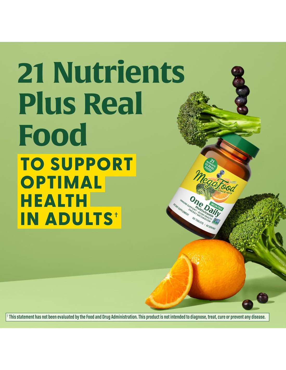 - Vitaminas y minerales esenciales más comida real en una tableta diaria para apoyar las necesidades nutricionales de los adultos y ayudar a llenar los vacíos en la dieta