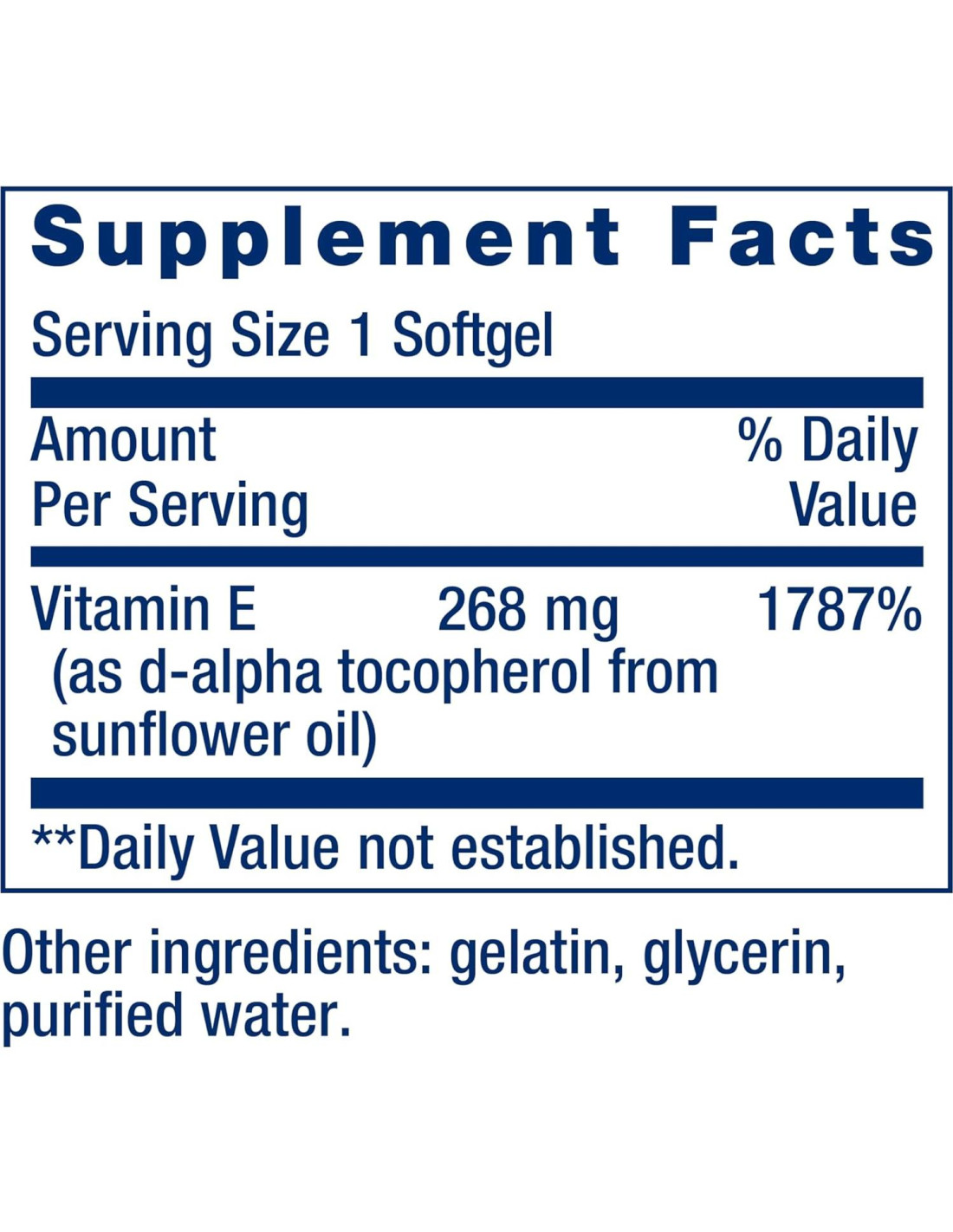 - VITAMINA E REAL - Este suplemento de vitamina E contiene 268mg de d-alfa tocoferol de plantas para apoyar la salud del corazón, el cerebro y la inmunidad.