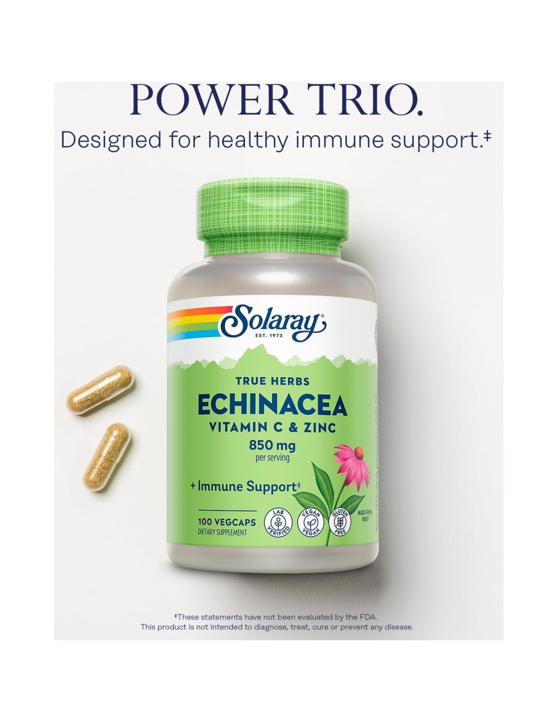 - Equinácea con Vitamina C y Zinc - Tres poderosos ingredientes se unen en una conveniente fórmula de bienestar diseñada para un poderoso apoyo inmunológico.*