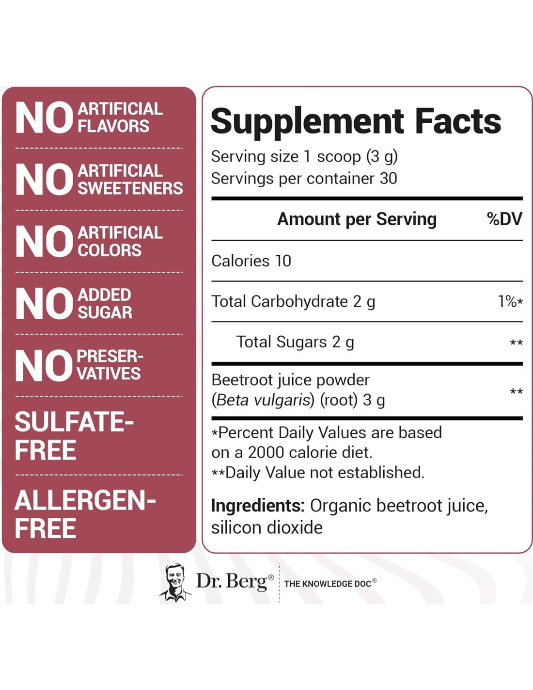 - 100% POLVO DE REMOLACHA ORGÁNICA - Proveniente de jugo de remolacha orgánica puro (Beta vulgaris) sin rellenos - solo polvo de remolacha roja limpio y natural. Como suplemento dietético, mezcla 1 cucharada en un vaso de agua de 8 oz (236.6 ml). Después de usar, cierra el recipiente herméticamente y deja el deshidratante dentro para mantener la frescura y prevenir grumos.