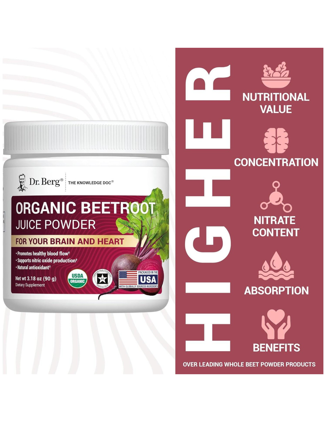 - AUMENTA EL ÓXIDO NÍTRICO Y EL FLUJO SANGUÍNEO - Naturalmente rico en nitratos, nuestra mezcla de polvo de remolacha orgánica ayuda a aumentar la producción de óxido nítrico, promoviendo un flujo sanguíneo saludable, resistencia y salud del corazón. Su color rojo profundo proviene de betalainas, potentes antioxidantes que combaten el estrés oxidativo y apoyan el bienestar general.
