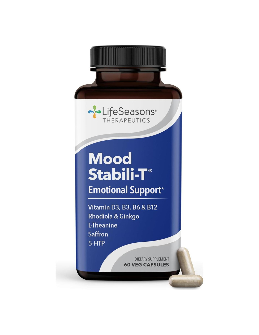 Es natural sentirse más feliz algunos días que otros, y a veces es difícil saber qué nos hace sentir optimistas y alegres en un momento, y decaídos en el siguiente. La tristeza es una emoción humana natural que resulta de un sentido de pérdida o lucha o empatía con los desafíos de amigos y seres queridos. Las fluctuaciones en el ánimo pueden resultar del tipo de estrés que experimentamos durante el día, el número de horas que hemos dormido, lo que hemos estado comiendo y bebiendo, y si estamos prestando demasiada atención a las malas noticias en los medios. Hay hierbas y nutrientes que apoyan una perspectiva más estable, y por eso creamos Mood Stabili-T, para ayudar a normalizar los aspectos del sistema nervioso y el sistema endocrino que influyen en el ánimo, sin los efectos secundarios que a menudo se ven con las recetas. Toma 2 cápsulas al día con comida. Usamos ingredientes sinérgicos como L-Theanina, L-Tirosina, 5-HTP y Vitaminas B para normalizar la transmisión nerviosa, junto con Azafrán, Rhodiola, Melisa, Flor de Pasión y Ginkgo para ayudar a tonificar, nutrir y promover la circulación. Nos enorgullecemos y cuidamos mucho en cómo seleccionamos, obtenemos y probamos nuestros ingredientes para cada uno de nuestros suplementos. Realizamos una extensa investigación sobre ingredientes individuales y desarrollamos fórmulas que funcionan sinérgicamente para ofrecer la máxima potencia. Siempre estamos en una búsqueda para identificar los mejores ingredientes que te ayuden a mantener un estado óptimo de salud. ¿Estás cansado de tomar múltiples suplementos para obtener los beneficios únicos de salud de cada uno? Nosotros también. LifeSeasons ha investigado, probado y combinado ingredientes para crear una dosis terapéutica. Queremos que hombres y mujeres encuentren soluciones simplificadas a sus desafíos de salud con solo un suplemento. Nos enorgullecemos y cuidamos mucho en cómo seleccionamos, obtenemos y probamos nuestros ingredientes. Realizamos una extensa investigación sobre ingredientes individuales y desarrollamos fórmulas que funcionan sinérgicamente para ofrecer la máxima potencia. En LifeSeasons vivimos por el dicho "mejores ingredientes, mejores fórmulas, mejores resultados." Creemos que obtener los mejores ingredientes hará las mejores fórmulas, y en última instancia, obtendrás los mejores resultados. En LifeSeasons, nuestro objetivo es ayudarte a vivir la vida al máximo. Valoramos la vida y es nuestro deseo protegerla, sostenerla y ver la vida florecer. En última instancia, se trata de ti. A través de la pureza y potencia de nuestros productos, LifeSeasons ayuda a sus clientes a encontrar el equilibrio entre valor y salud óptima. Creamos fórmulas de suplementos que equilibran la sabiduría de la naturaleza y el progreso de la ciencia, utilizando nutrientes clínicamente probados que el cuerpo puede absorber fácilmente.
