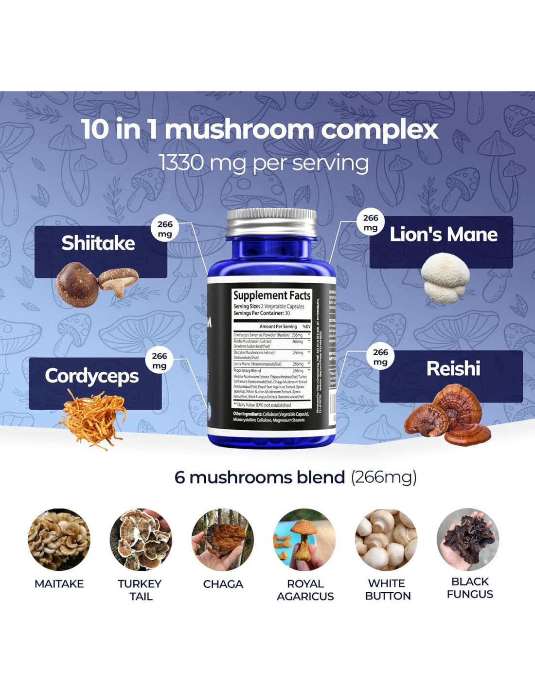 - MEZCLA DE CHAMPIÑONES: Eleva el bienestar con nuestra mezcla premium de extractos de Cordyceps, Reishi, Shiitake y Melena de León. Experimenta un apoyo integral para el enfoque, el equilibrio intestinal, la energía y el alivio del estrés.