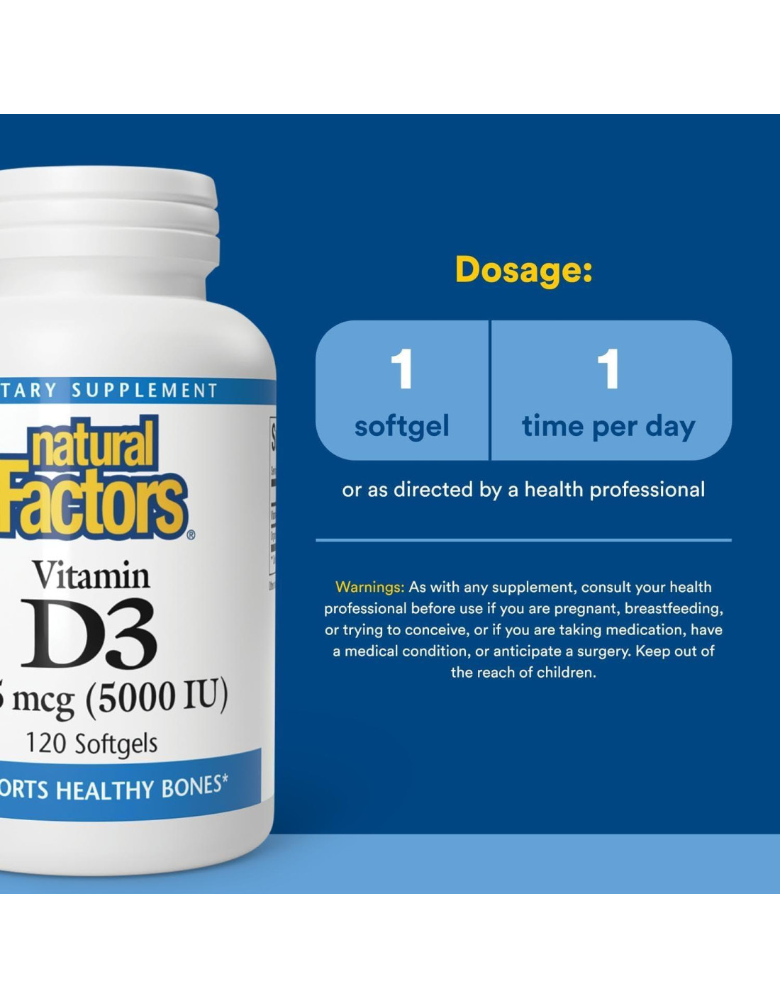 Obtén más calcio de tu comida con la Vitamina D3 de Factores Naturales. Este nutriente esencial apoya huesos y dientes fuertes, ayuda a regular el sistema inmunológico y ayuda a mantener nervios y músculos saludables. Mezclamos cuidadosamente D3 con aceite de linaza orgánico para mejorar la absorción en esta gelatina blanda fácil de tragar. Estas afirmaciones no han sido evaluadas por la FDA. Este producto no está destinado a diagnosticar, tratar, curar o prevenir ninguna enfermedad.