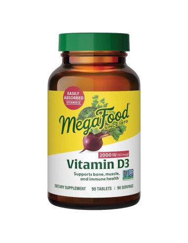 - HUESOS, MÚSCULOS Y SOPORTE INMUNOLÓGICO: MegaFood Vitamina D3 2000 UI (50 mcg) apoya huesos, dientes, músculos y salud inmunológica; 250% del valor diario por porción