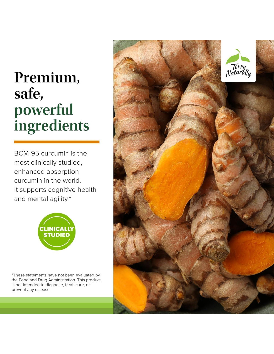 - Curcumina BCM-95; Esta curcumina de absorción mejorada, estudiada clínicamente, se mezcla con aceite esencial de cúrcuma que contiene ar-turmerona. Apoya la salud cognitiva, la agilidad mental y protege tu cerebro de los riesgos del daño oxidativo.