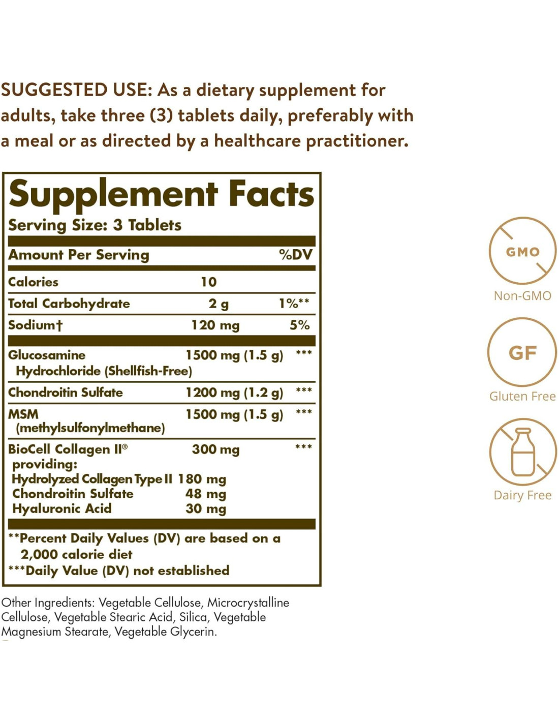 La glucosamina apoya la movilidad, el rango de movimiento y la flexibilidad. Ayuda a aliviar el estrés articular ocasional debido al ejercicio o la actividad física. La condroitina apoya la función del cartílago y de las articulaciones. El MSM (Metilsulfonilmetano) proporciona una fuente natural y biodisponible de azufre y promueve la comodidad articular. El MSM trabaja sinérgicamente para apoyar los beneficios de la glucosamina y la condroitina. Esta formulación también proporciona Ácido Hialurónico.