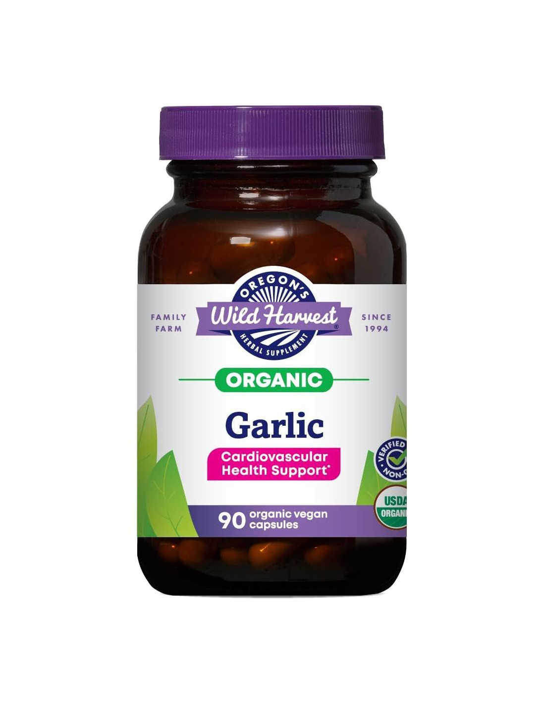 Cápsulas de Ajo de Oregon's Wild Harvest Fabricadas en Redmond, OR, Oregon's Wild Harvest fue fundada con orgullo en 1994 por una enfermera quirúrgica registrada y agricultor con el deseo de crear suplementos herbales naturales que devuelvan a la tierra a través de suelo saludable, agua limpia y la conservación de nuestras semillas No-OGM.