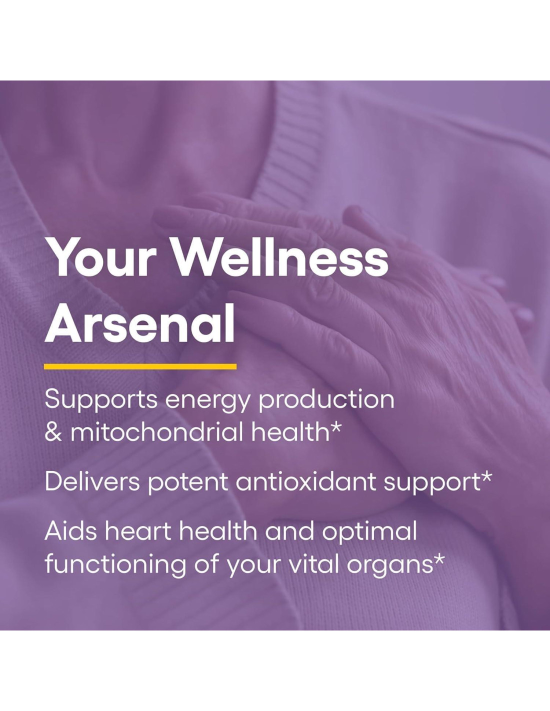 - Poder Celular: La CoQ10 trabaja dentro de las mitocondrias para convertir los alimentos en la energía que alimenta las células de todo el cuerpo, en particular el corazón y el cerebro