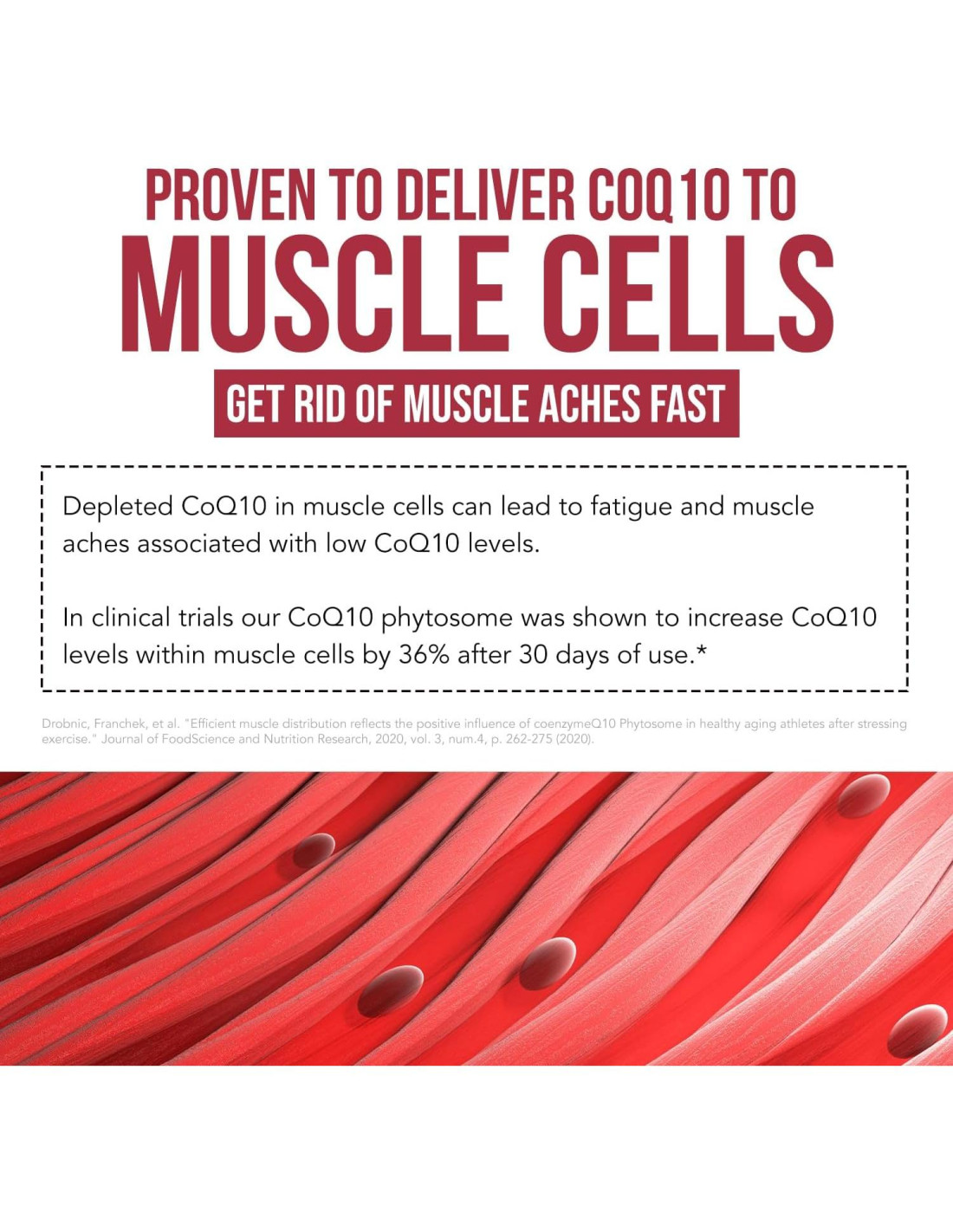 - CLÍNICAMENTE PROBADO PARA ENTREGAR CoQ10 A LAS CÉLULAS: En pruebas clínicas, nuestro fitósoma de CoQ10 demostró entregar realmente CoQ10 a su destino objetivo; las células. También es la única forma de CoQ10 probada para aumentar los niveles de CoQ10 en los músculos.