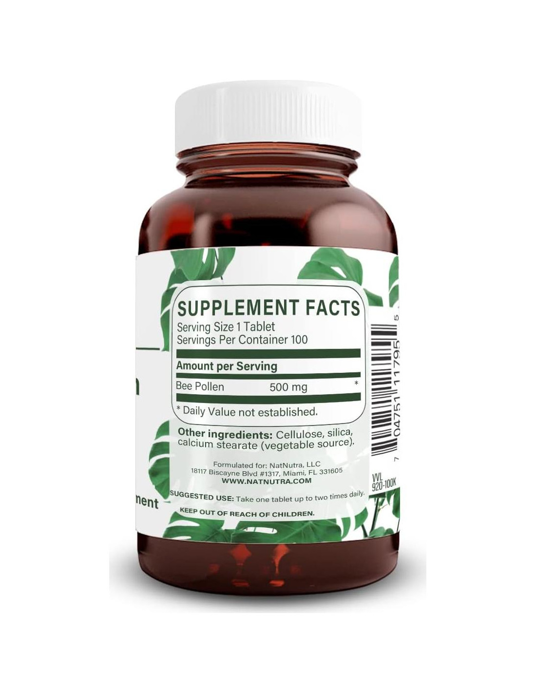 - Tabletas de 500mg Ricas en Nutrientes: Cada tableta contiene 500mg de pólen de abeja, proporcionando una dosis concentrada de nutrientes esenciales, incluyendo vitaminas, aminoácidos y más de 250 compuestos activos para apoyar la salud general.