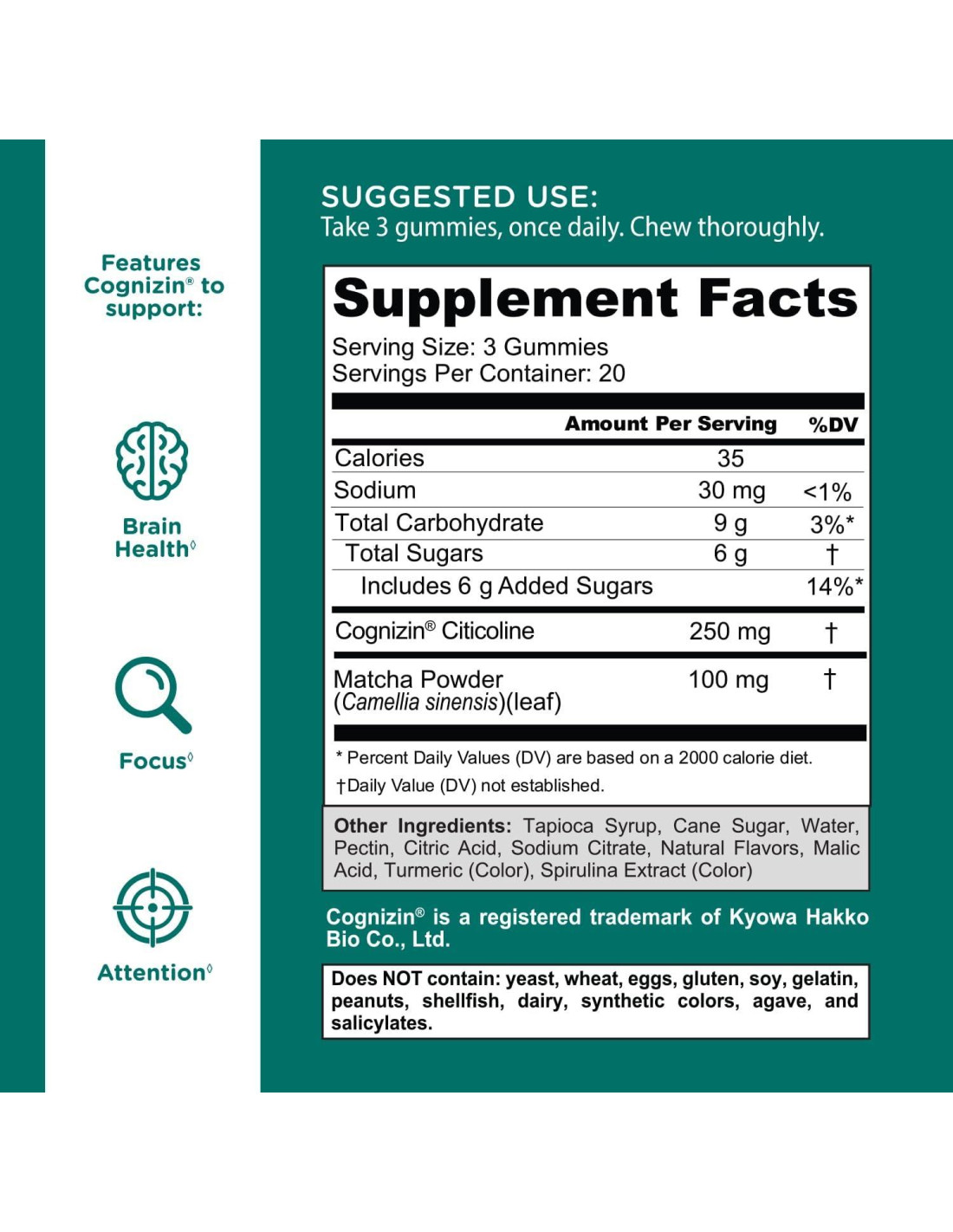 - Las gomitas Goli Matcha Mind son una adición perfecta a tu rutina diaria con Cognizin para ayudar con el enfoque, la salud cognitiva y la atención.
