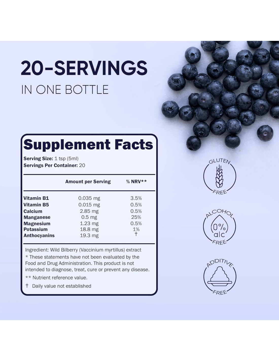 Los arándanos, también conocidos como arándanos silvestres, son pequeñas bayas de color azul oscuro que son nativas de Europa y América del Norte. Están estrechamente relacionados con los arándanos que se encuentran comúnmente en los supermercados, pero tienen un sabor más intenso y complejo y contienen muchos más micronutrientes. Se conocen por su alto valor nutricional y son una rica fuente de antioxidantes y otros compuestos beneficiosos como antocianinas y flavonoides. Esto hace que los arándanos sean una opción popular para aquellos que buscan mejorar su salud en general. El alto contenido de vitaminas en el extracto líquido puede apoyar una piel y ojos más saludables.