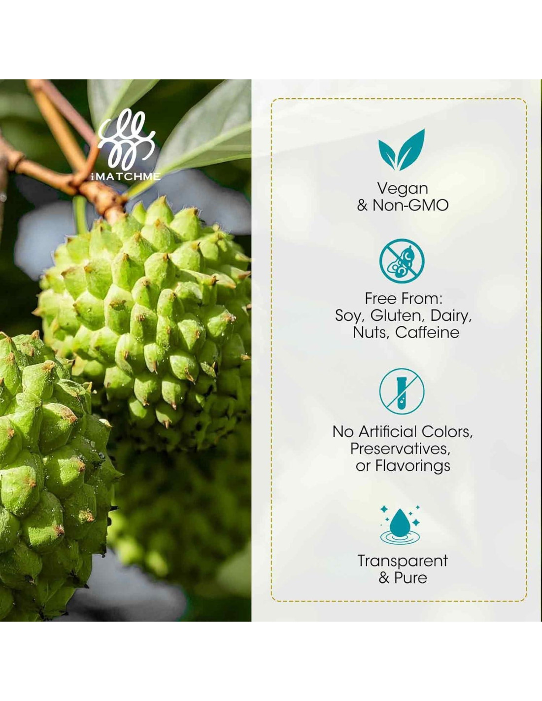 - [Por qué iMATCHME] Solo usamos los mejores ingredientes, pureza y potencia que tu cuerpo merece. Nuestro líquido oral de soursop sigue estrictas pautas de producción, y este suplemento vegetariano, sin azúcar, NO OGM, sin gluten, apto para keto es seguro. Además, si por alguna razón no estás satisfecho con nuestro producto, no dudes en hacérnoslo saber, responderemos rápidamente dentro de 24 horas