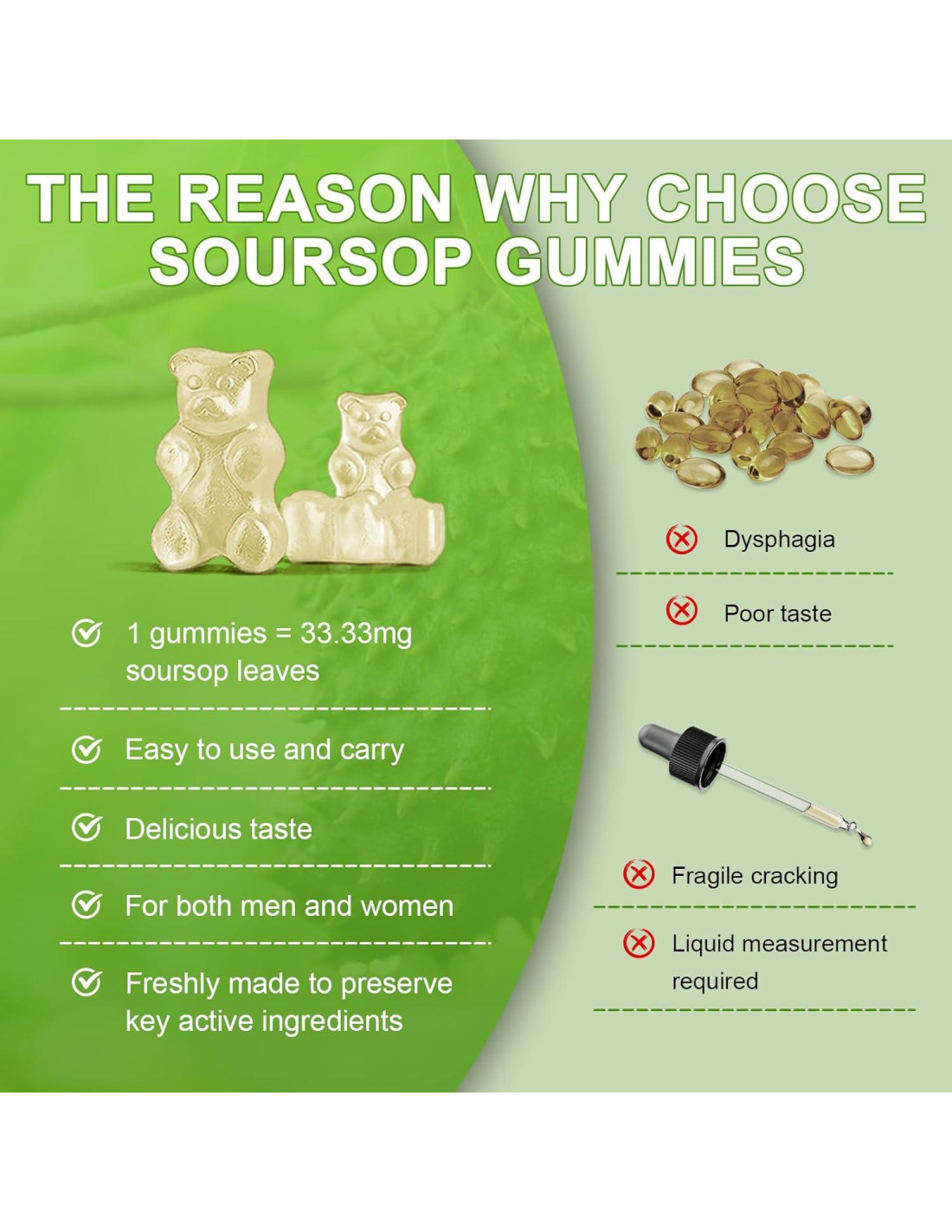 - Frescas y Saludables, Garantía de Postventa: Las Gomitas de Graviola Soursop están libres de gluten, trigo, soja, nueces, lácteos y colores sintéticos. Hechas con las hojas de graviola más frescas seleccionadas a mano, retienen los ingredientes activos clave, permitiéndote disfrutar de los beneficios para la salud de la graviola con tranquilidad. Si tienes alguna pregunta al recibir tu pedido, no dudes en contactarnos, y nos aseguraremos de una resolución satisfactoria para ti.