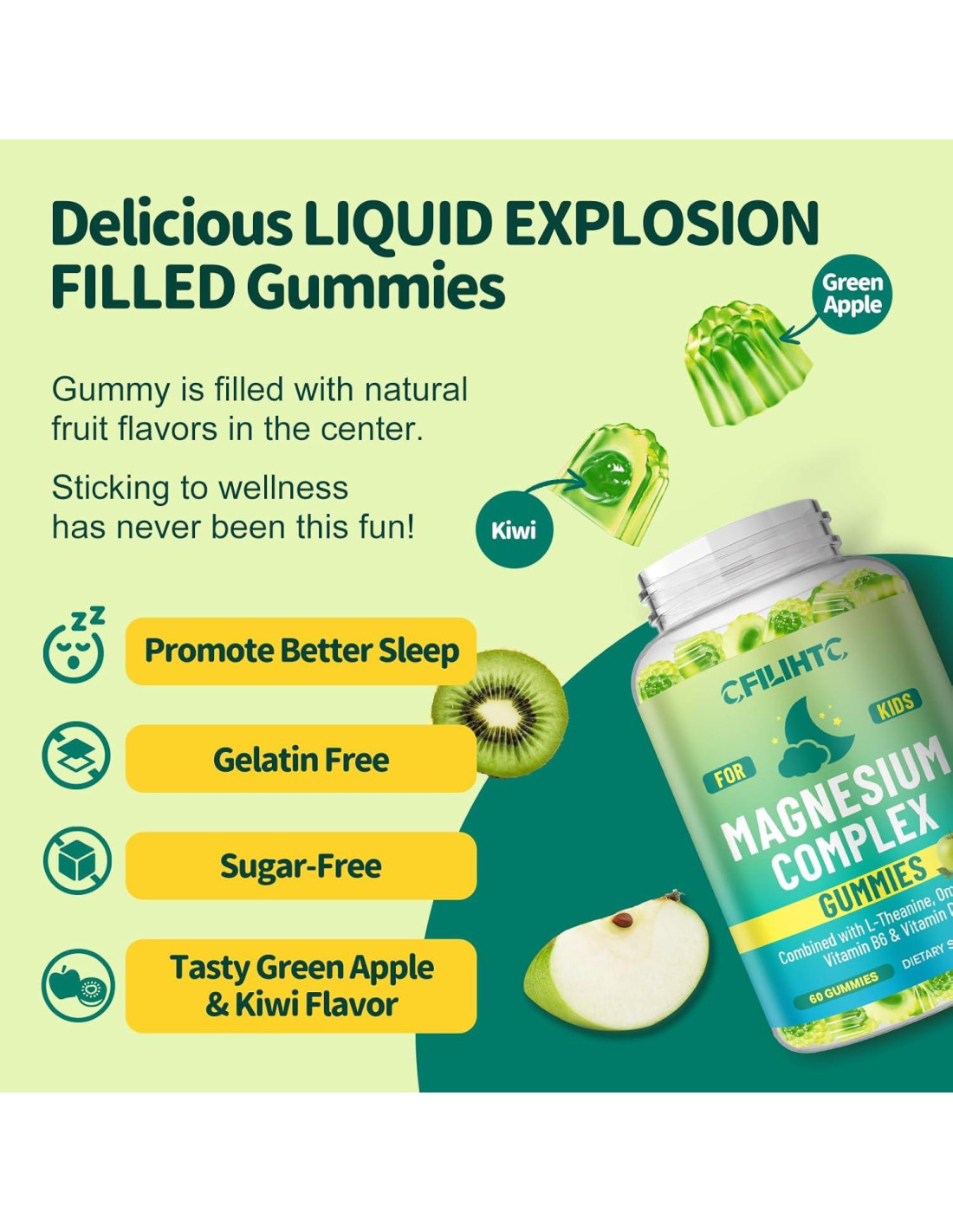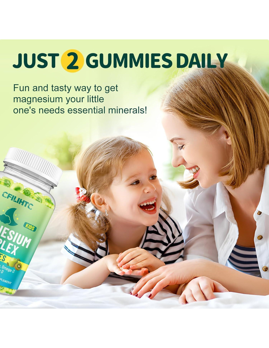 - Apoyo Multivitamínico Premium: El suplemento de sueño de magnesio para niños de CFILIHTC incluye Vitamina D3 y Vitamina B6, que mejoran las tasas de absorción de magnesio y calcio. También hemos enriquecido nuestras gomitas de glicinato de magnesio con Omega-3 derivado de algas para apoyar el desarrollo cerebral y nervioso de los niños, la salud visual y la fortaleza del sistema inmunológico.