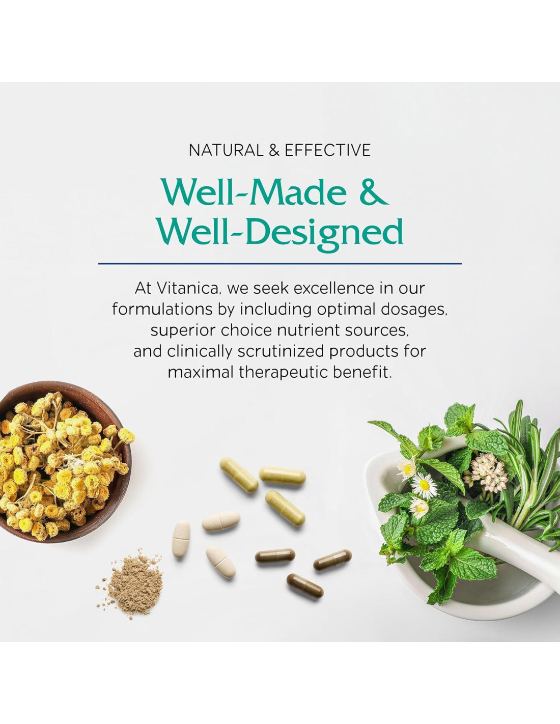 Apoya la cognición saludable, el bienestar emocional y la circulación saludable en las extremidades. El cuerpo de la investigación alemana se centra en extractos estandarizados con 24% de glucósidos de flavona de ginkgo y 6% de lactonas terpénicas, y cada una de nuestras cápsulas contiene estos compuestos precisos. Nuestro extracto de Ginkgo también contiene un equilibrio de bioflavonoides que apoyan una vasculatura saludable y una función saludable en el cerebro, el sistema cardiovascular y el sistema nervioso central. También hemos incluido la hoja utilizada históricamente, honrando la medicina tradicional y la sinergia de toda la planta. El uso de la medicina herbal de ginkgo se remonta a más de dos mil años. Nuestra preparación presenta la dosis estandarizada más investigada, así como el uso tradicional de la hoja entera. No OGM. Hierbas orgánicas y/o silvestres. Vegano. También adecuado para hombres. Uso Sugerido: 1 cápsula, tres veces al día. Estas declaraciones no han sido evaluadas por la FDA. Este producto no está destinado a diagnosticar, tratar, curar o prevenir ninguna enfermedad. Vitanica es una línea premium de suplementos formulados clínicamente por la Dra. Tori Hudson, una médica naturista especializada en la salud de las mujeres durante más de 34 años. Las fórmulas de Vitanica contienen formas premium de hierbas y nutrientes utilizados en dosis óptimas para una máxima biodisponibilidad y absorción. Todos los materiales crudos entrantes son probados por identidad, potencia, calidad y limpieza. Creado en pequeños lotes, libre de conservantes, alérgenos comunes, aglutinantes y rellenos. Los productos de Vitanica son 100% vegetarianos.