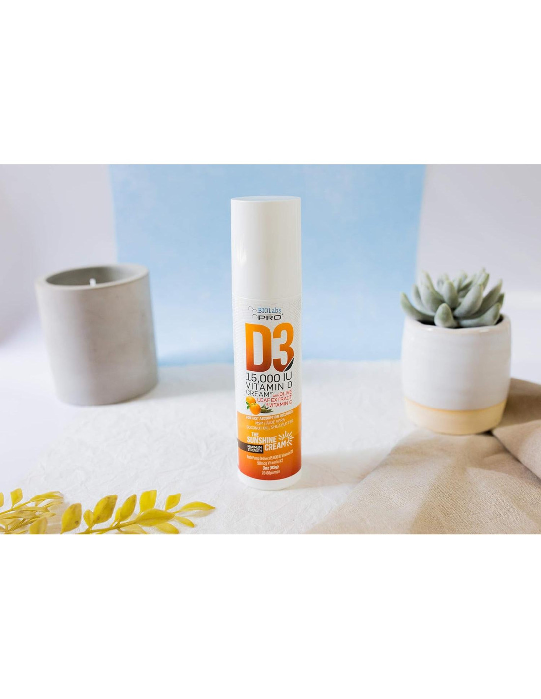 - MÁXIMA POTENCIA: Simplemente no hay otra crema de vitamina d3 tan poderosa. La mayor concentración de crema de vitamina d3 hasta ahora era de 10000ui. En nuestro laboratorio hemos descifrado el código para ofrecerte 15000ui de vitamina d por bomba, un 50% más para que dure más y te brinde mejores resultados. Con alrededor de 70 bombas por botella, esto te da un suministro de dos meses por botella a menos de 0.50 por día.