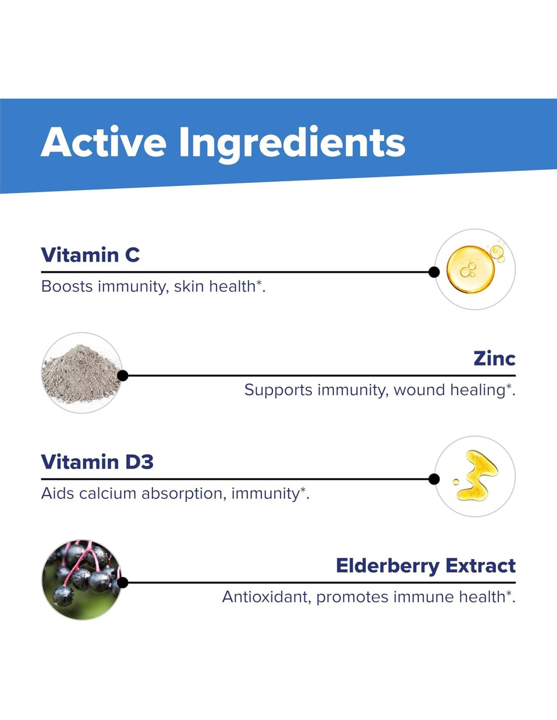 - Nutrientes Esenciales: Cada tableta incluye vitamina C, vitamina D3, zinc y extracto de saúco; también tiene un 94% menos de azúcar que tu gomita promedio