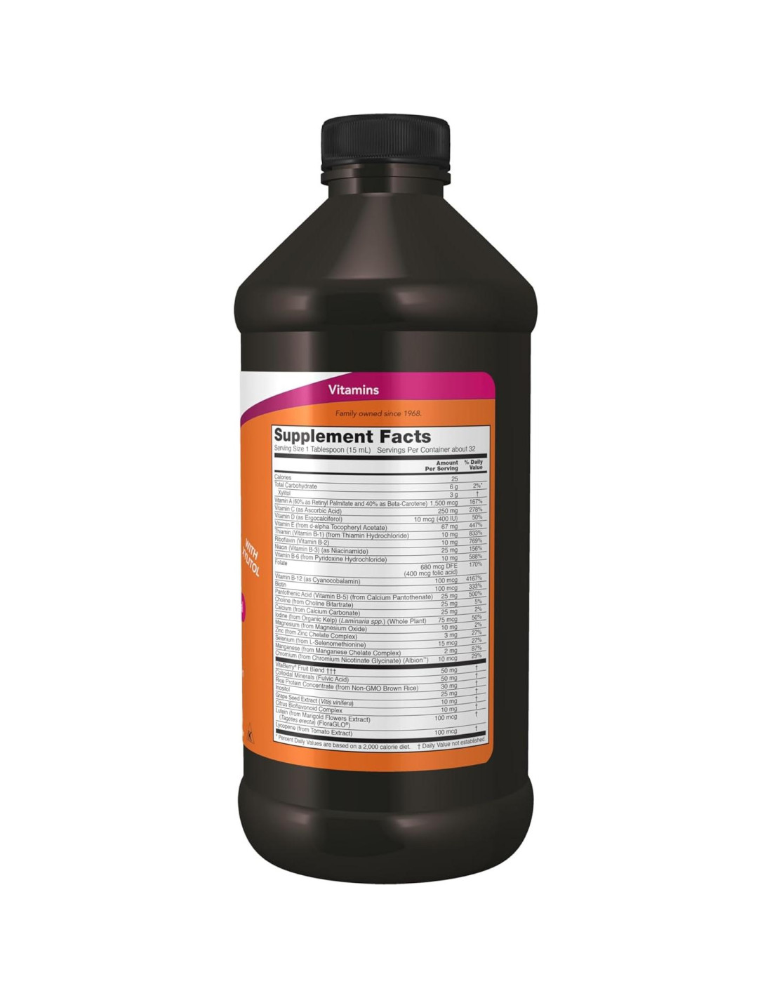 - Este multivitamínico líquido con sabor a naranja tropical es libre de hierro y endulzado con xilitol