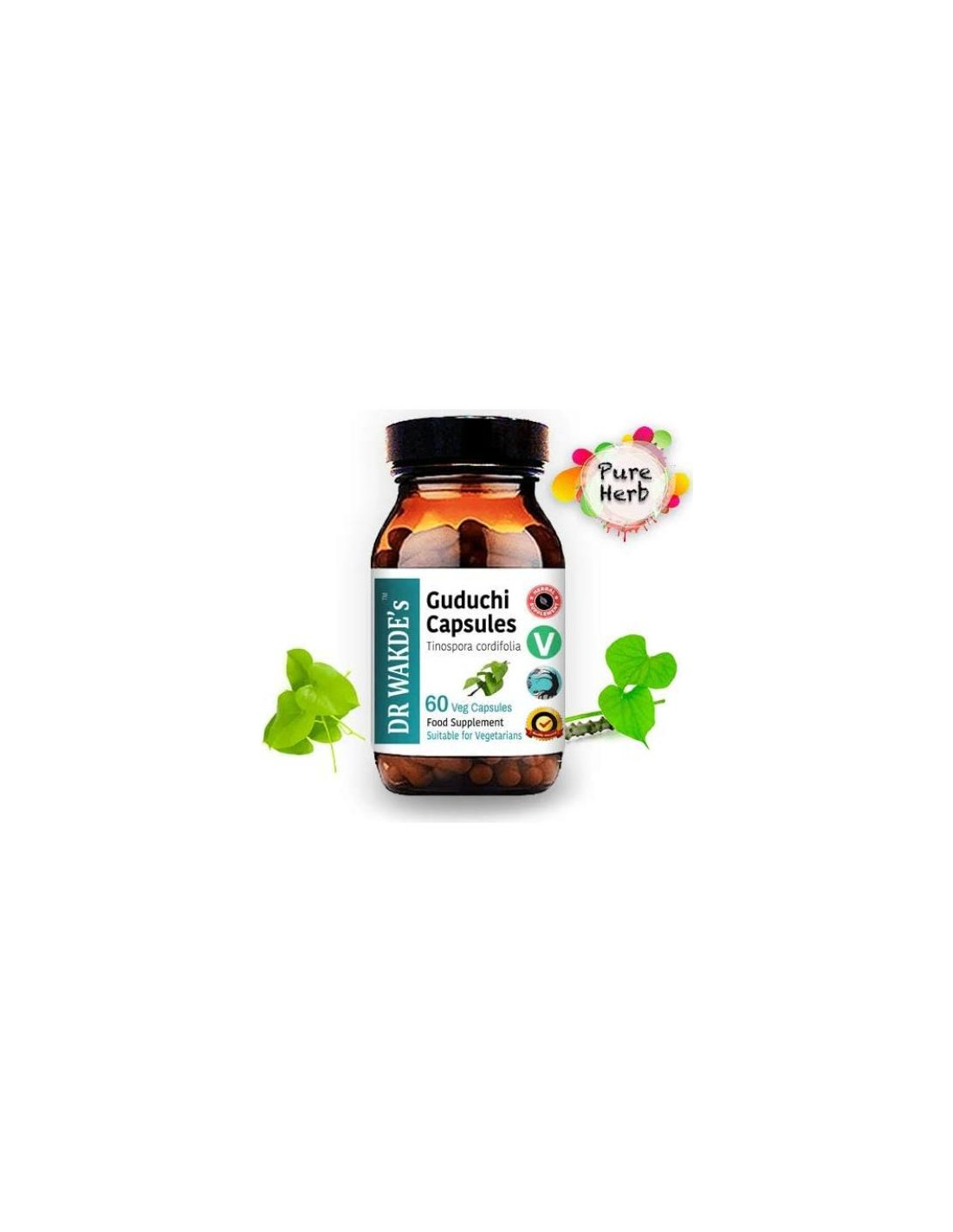 - <b>GUDUCHI DE DR WAKDE: </b> Guduchi o 'Tinospora cordifolia' ha sido elogiada durante mucho tiempo por sus propiedades beneficiosas. Las personas la han estado utilizando durante muchos años por sus beneficios para la salud. Las cápsulas Guduchi de DR WAKDE contienen hierba pura. Es un suplemento totalmente natural utilizado tradicionalmente en Ayurveda para apoyar un estilo de vida saludable y equilibrado. Las cápsulas Guduchi de DR WAKDE son adecuadas para aquellos que buscan integrar la hierba Guduchi como un suplemento diario.