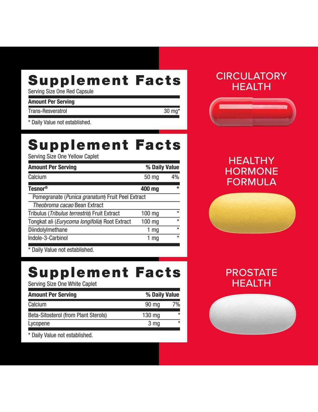 Con 400mg de Tesnor, clínicamente demostrado para aumentar los niveles de testosterona libre en un 20% y los niveles de testosterona total en un 15%, que son cruciales para la salud muscular. Además, contiene Tribulus, Tongkat ali, Diindolilmetano (DIM) e indol-3-carbinol. Apoya la función prostática normal con licopeno y beta-sitosterol*. ResVida resveratrol, estudiado clínicamente, ha demostrado mejorar la dilatación de los vasos sanguíneos - o cómo tus vasos sanguíneos se expanden y transportan sangre, oxígeno y nutrientes a los tejidos que más lo necesitan*. Clínicamente probado para ayudarte a sentirte mejor y trabajar mejor que un multivitamínico básico*^. Con un 20% más de absorción de ingredientes clave para el sistema inmunológico*^. 18 vitaminas y minerales al 100% del valor diario o más. ResVida resveratrol, estudiado clínicamente, ha demostrado mejorar la dilatación de los vasos sanguíneos - o cómo tus vasos sanguíneos se expanden y transportan sangre, oxígeno y nutrientes a los tejidos que más lo necesitan*. La mezcla de multivitaminas Mega Men está clínicamente probada para ayudarte a sentirte mejor y aumentar los niveles de nutrientes clave*^. Aumenta los niveles de testosterona libre en un 20% y los niveles de testosterona total en un 15% con Tesnor estudiado clínicamente*. Licopeno y beta-sitosterol apoyan la función prostática normal*. El ejercicio cardiovascular ayuda a mantener la salud del corazón, lo que puede influir en el rendimiento. Asegúrate de mezclar entrenamiento de resistencia para mantener la masa muscular. El estrés y el exceso de pensamiento pueden ser distractores, especialmente en el dormitorio. Encuentra formas de mantener el estrés a raya, como la meditación, el ejercicio y hablar con otros. Los niveles bajos de testosterona están asociados con una mayor masa grasa. Para mantener tu peso bajo control, come alimentos ricos en nutrientes, como carnes magras, frutas y verduras, y evita los alimentos procesados. Hemos realizado algunos cambios en nuestra fórmula para satisfacer mejor tus necesidades. Eliminamos la mezcla de frutas y verduras debido a problemas en la cadena de suministro. En su lugar, mejoramos la fórmula añadiendo más magnesio, que juega un papel vital en el apoyo a la función muscular, la función nerviosa y el bienestar general.