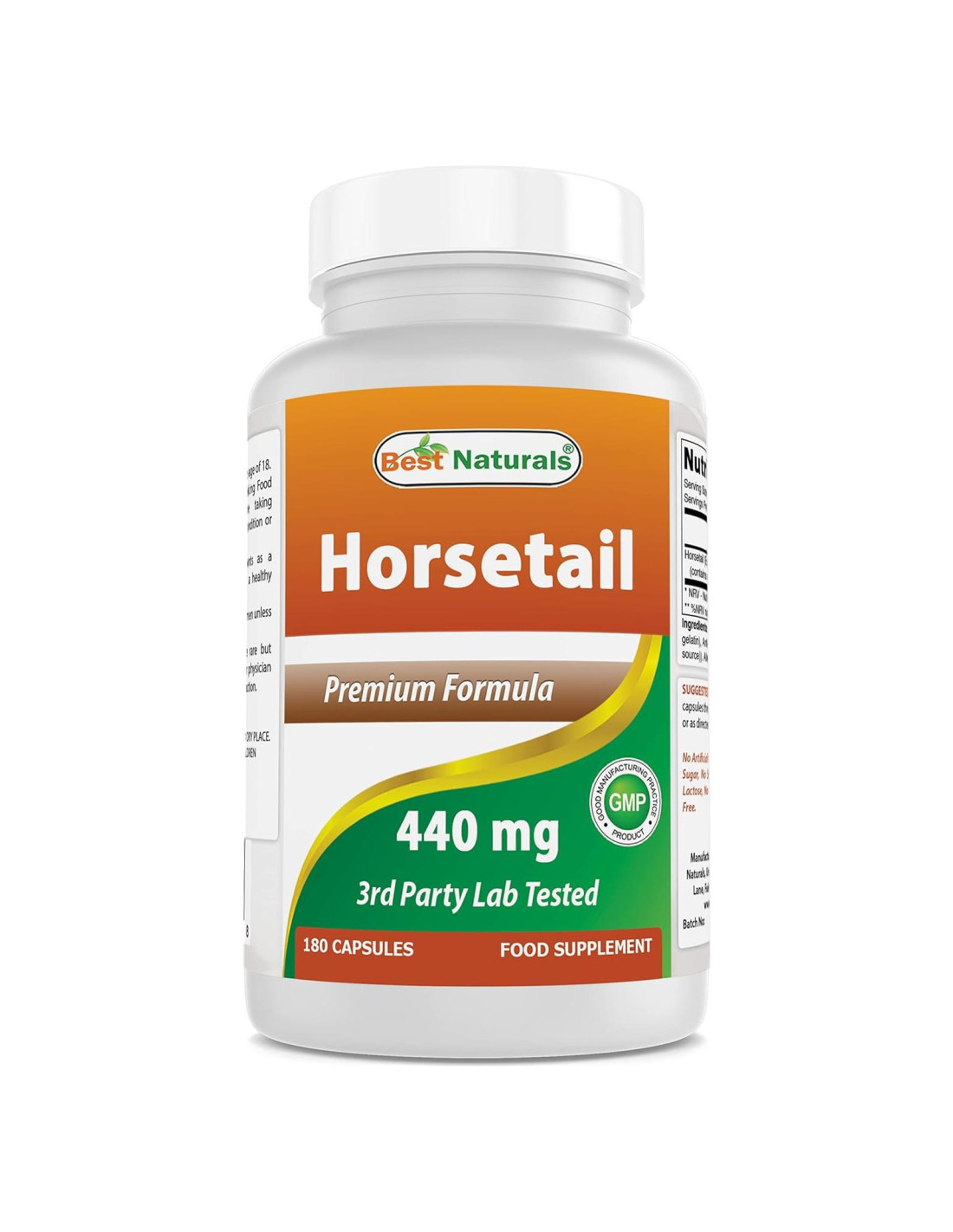 - 440 mg de cola de caballo por cápsula - 180 cápsulas por botella.