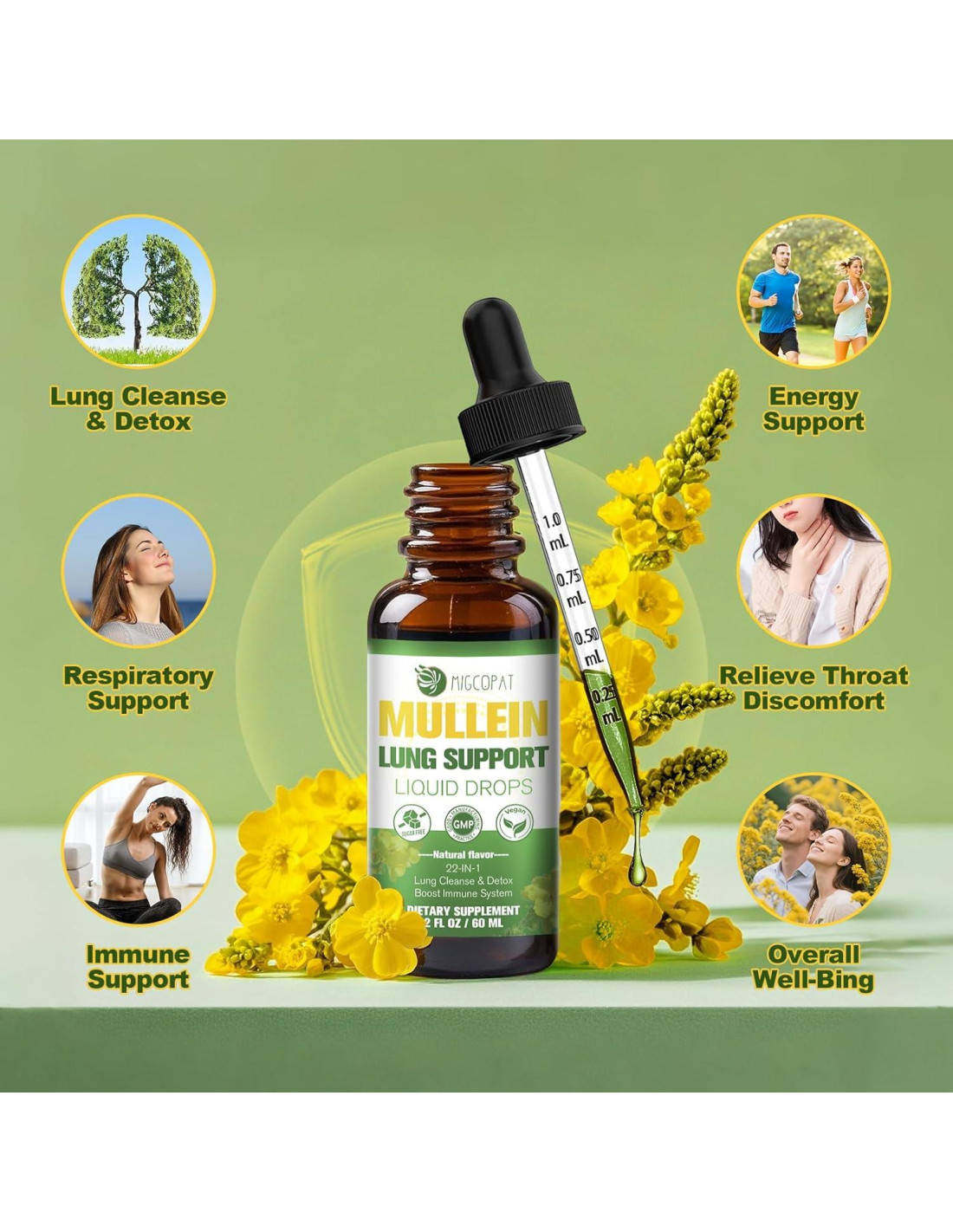 - Soporte para la Limpieza y Desintoxicación de Pulmones: Formulado con Extracto de Hoja de Mullein (20:1) y N-Acetil Cisteína (NAC), este suplemento apoya las vías de desintoxicación natural del cuerpo y ayuda a mantener la función respiratoria normal. Una opción ideal para quienes buscan apoyo botánico para su rutina de bienestar diaria.