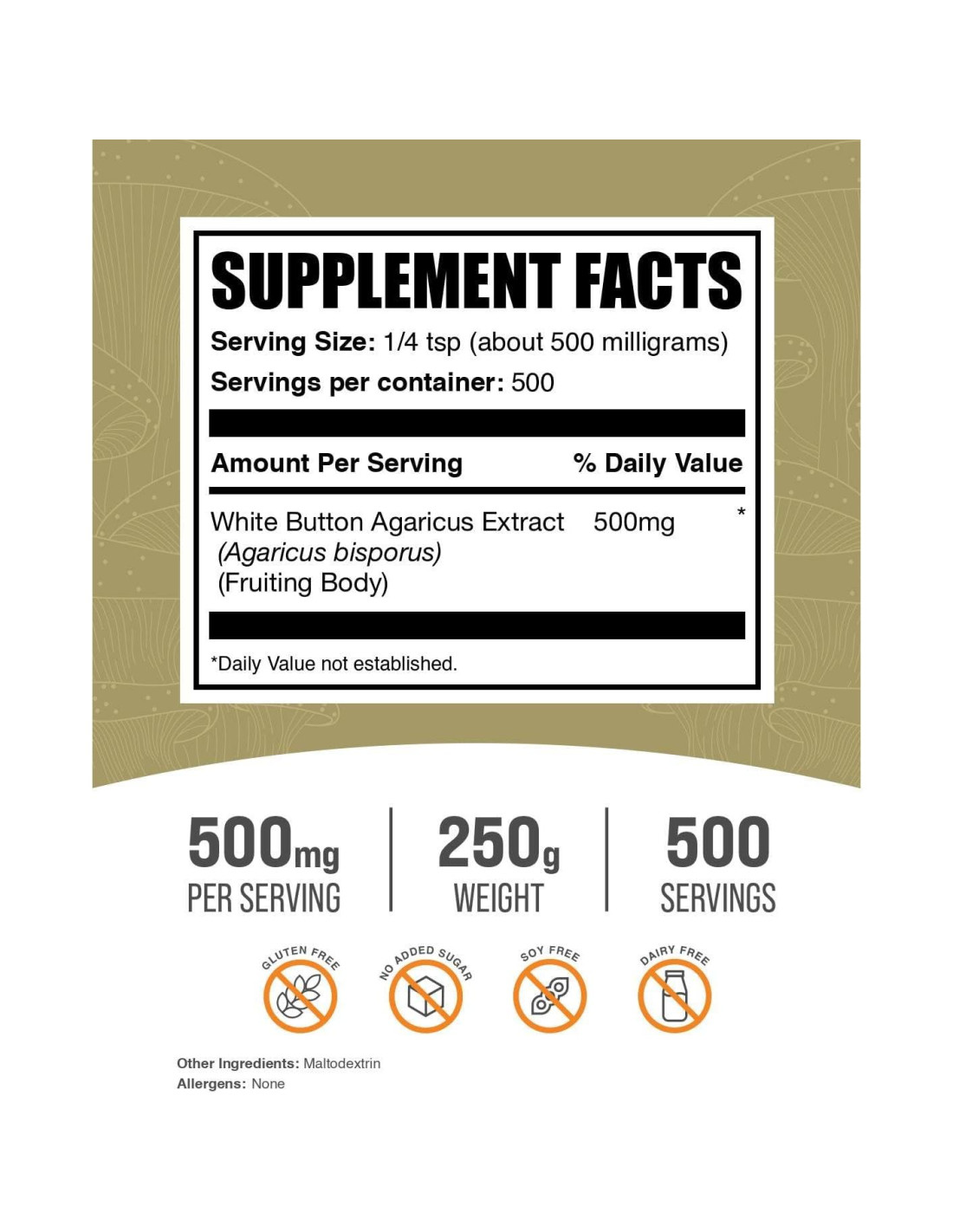 - Ideal para diversas preferencias dietéticas: Diseñado con inclusión en mente, nuestro polvo de Extracto de Champiñón Blanco, un suplemento de Champiñón, es adecuado para personas que siguen dietas vegetarianas, sin gluten o sin lácteos. Aseguramos que nuestros productos se puedan integrar en tu estilo de vida, independientemente de las restricciones dietéticas.