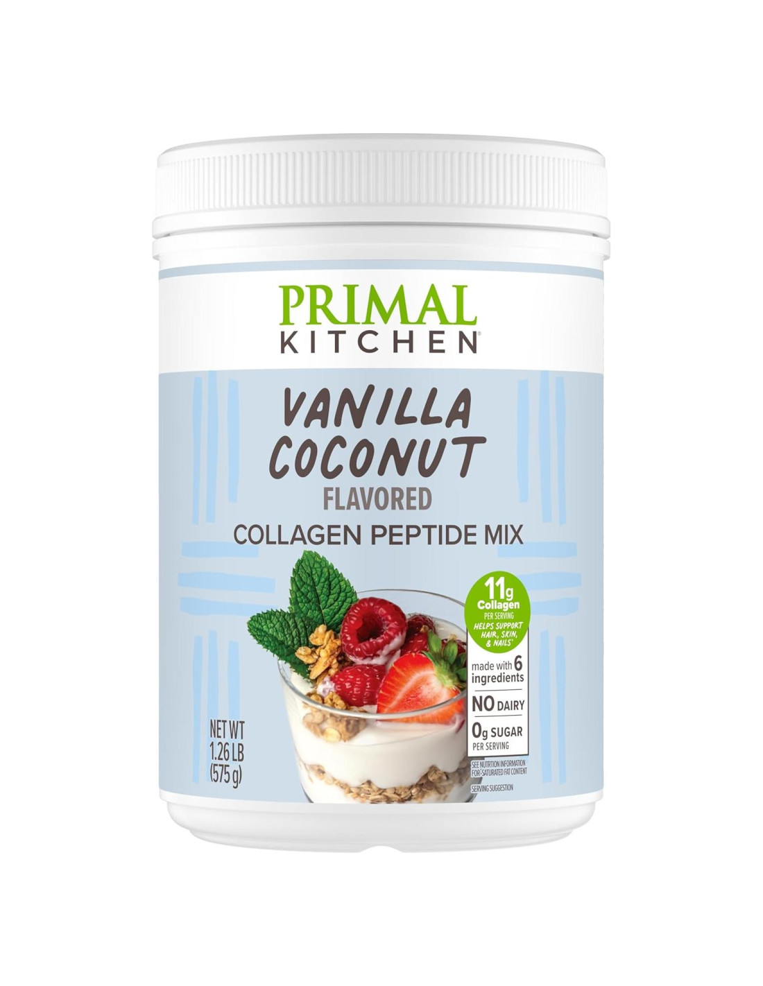 - Colágeno de Vainilla 20 oz: Aumenta tu ingesta de colágeno con el cremoso sabor a vainilla de nuestro polvo de colágeno más vendido. La Mezcla de Bebida de Colágeno de Coco Vainilla Primal Kitchen contiene 11g de péptidos de colágeno por porción para un delicioso apoyo a la piel, cabello y uñas en cada sorbo. Perfecto caliente o frío, solo mezcla, agita y disfruta.