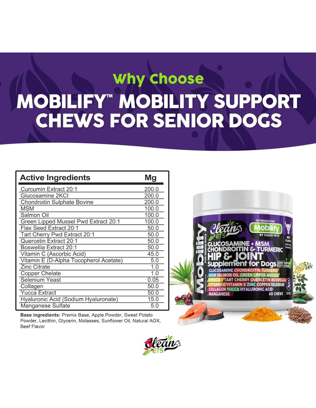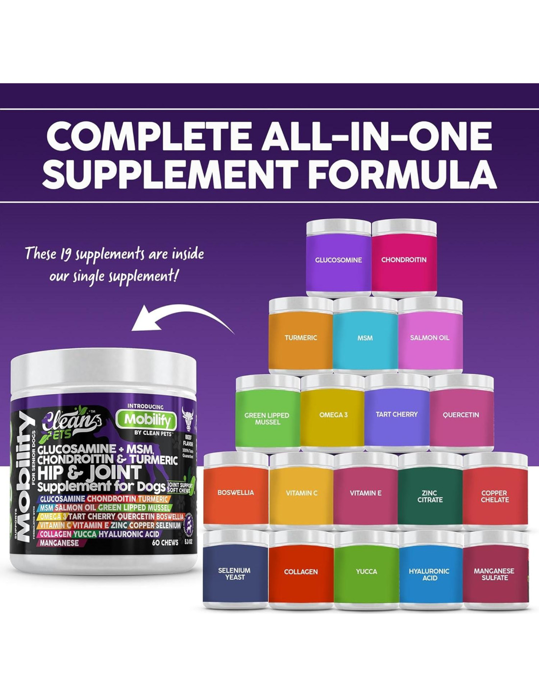 - Vitaminas y suplementos para perros: Los beneficios añadidos de glucosamina, condroitina, MSM, suplementos de minerales y suplemento de yodo crean un suplemento holístico que aborda todos los aspectos del suplemento para caderas y articulaciones para perros. La glucosamina para perros y los suplementos de quercetina ayudan con el alivio de alergias en perros y la movilidad para perros. Yuca, manganeso, suplementos de ácido hialurónico y aceite de salmón para perros crean un suplemento articular para perros que ayuda en la vitalidad para que puedas seguir celebrando el cumpleaños de tu perro.