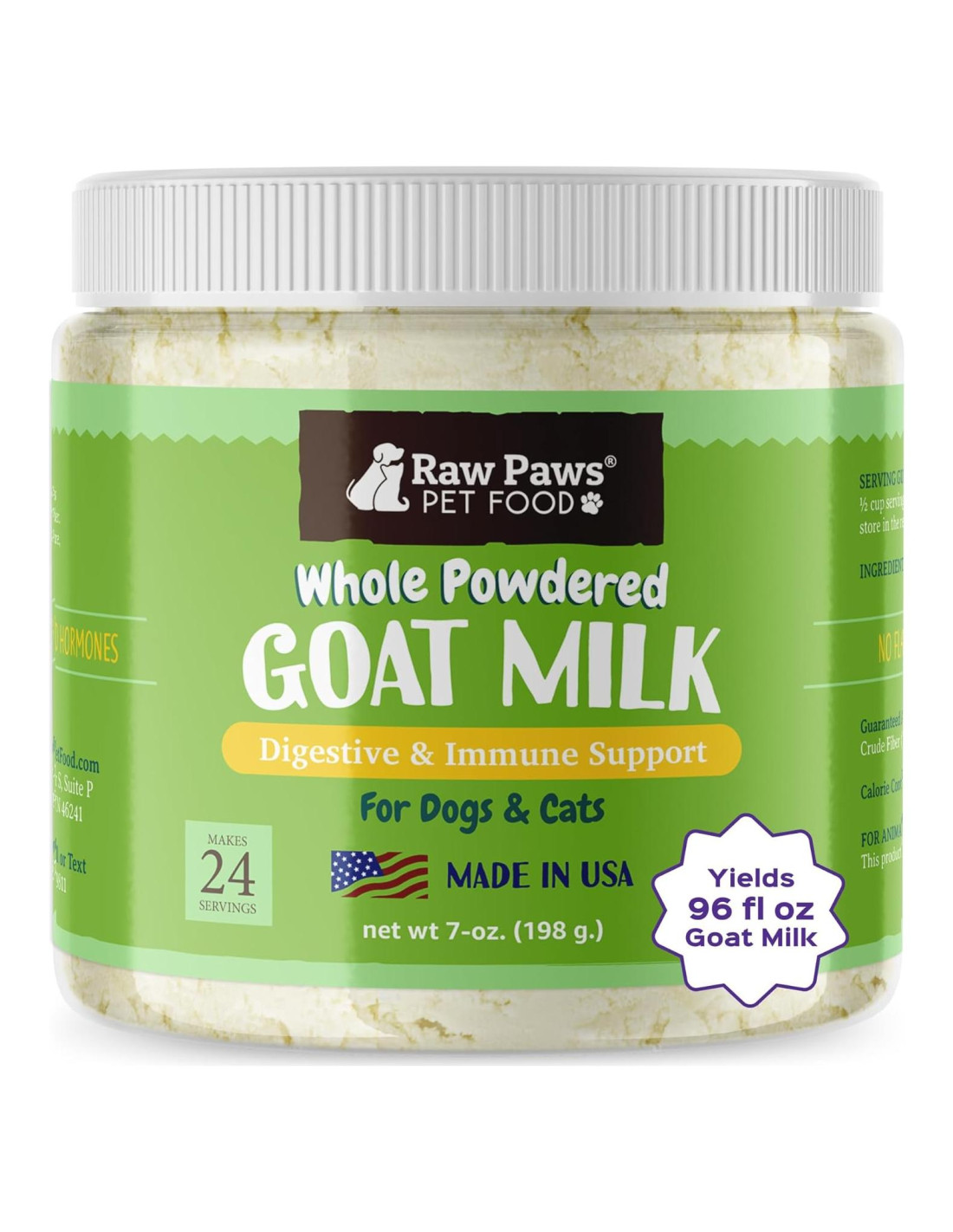 - POLVO DE LECHE DE CABRA DESHIDRATADA NUTRICIONAL Y TOTALMENTE NATURAL: Dale a tu bebé peludo los mismos beneficios nutricionales de la leche de cabra con nuestro polvo de leche de cabra seca totalmente natural, fácil de almacenar y servir. Espolvorea el polvo de leche de cabra en la comida de la mascota, o simplemente agrega agua y sirve como un reemplazo de leche altamente digestible para cachorros y gatitos. Vierte sobre comida húmeda o seca como un complemento alimenticio para gatos o perros para mayor nutrición y sabor o ofrécelo diariamente como un suplemento nutricional de leche independiente.