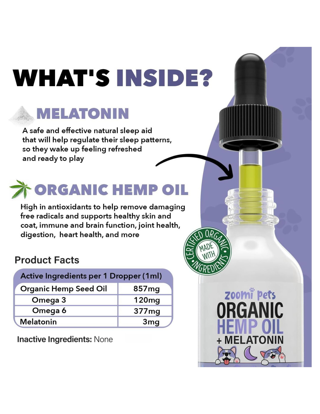 - ACEITE DE CÁÑAMO ORGÁNICO PARA PERROS Y GATOS CON MELATONINA - Un equilibrio óptimo rico en ácidos grasos omega esenciales apoya la función del corazón, riñón, ojo y cerebro. Este aceite de cáñamo para perros y gatos es perfecto para todas las razas y tamaños y puede ayudar a promover patrones de sueño regulares.