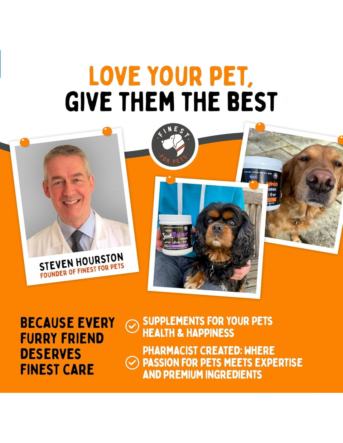 Nuestros suplementos para mascotas están elaborados con ingredientes de calidad humana, elegidos específicamente para mejorar la salud y el bienestar de su mascota. Experimente mejoras notables en la vitalidad y felicidad de su mascota. Nuestros productos no solo son beneficiosos, ¡sino también deliciosos! Llenos de sabores que las mascotas adoran, estamos seguros de que su amigo peludo los considerará un delicioso regalo que no podrá resistir. Disfrute de suplementos premium y sabrosos a un precio asequible. Finest for Pets ofrece ingredientes de la más alta calidad sin arruinarse. es la marca de suplementos para mascotas en la que puede confiar. Ofreciendo gran valor e ingredientes premium, nuestros productos están formulados por un farmacéutico dedicado y amante de los perros que valora la salud y vitalidad de su mascota. Brinde a su amigo peludo el mejor cuidado con nuestros suplementos de alta calidad, elaborados para apoyar su bienestar y felicidad. Confíe en Finest for Pets para soluciones seguras y efectivas diseñadas con amor y experiencia.