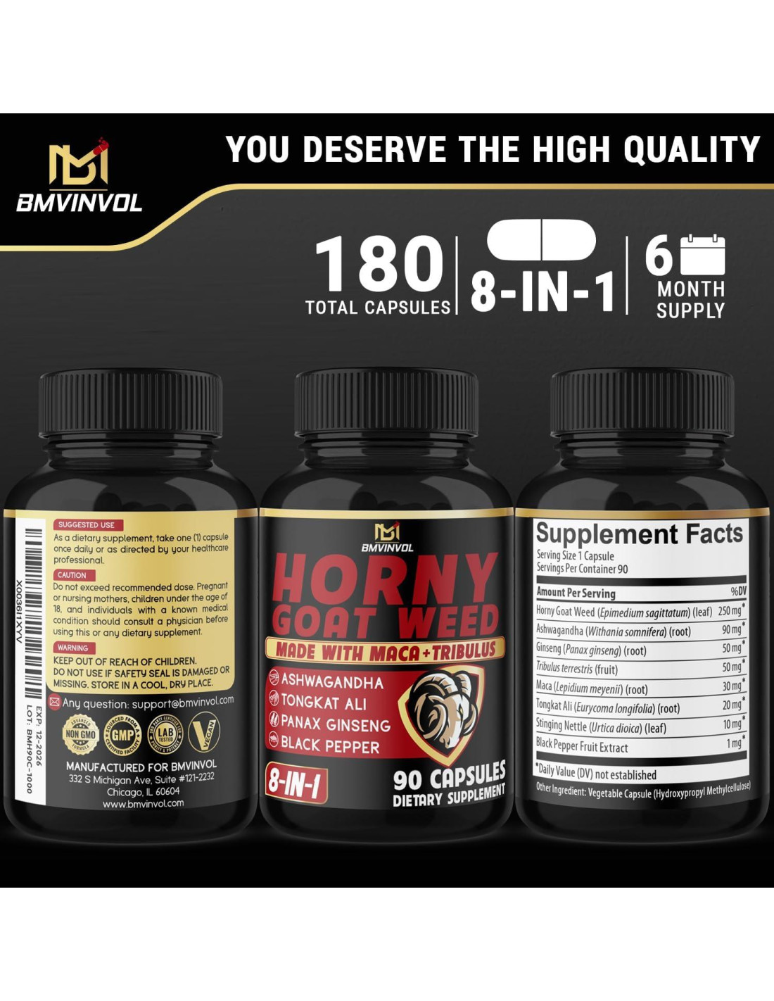 - Ingredientes: Hierba de Cabra Apasionada, Ginseng Panax, Tribulus, Ashwagandha, Maca, Tongkat Ali, Ortiga y Pimienta Negra.