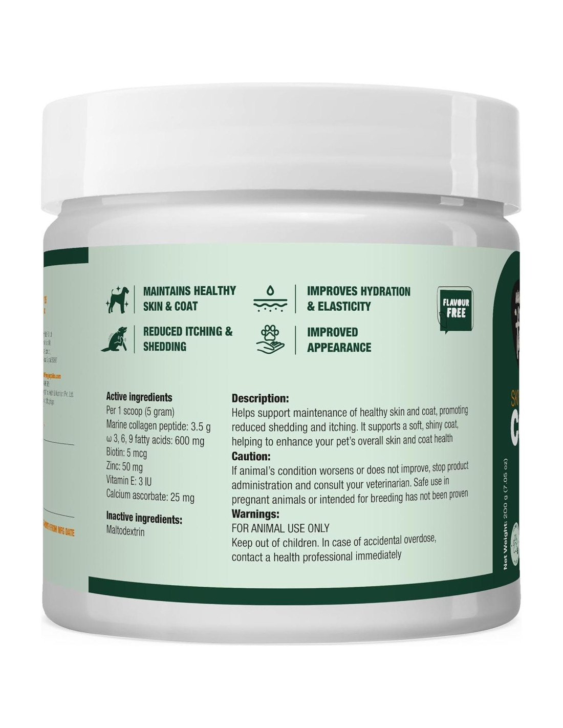- Hidratación de piel y abrigo grueso y brillante - Enriquecido con péptidos, este suplemento mejora la hidratación de la piel y promueve un abrigo grueso y brillante - ideal para mascotas con problemas de piel.