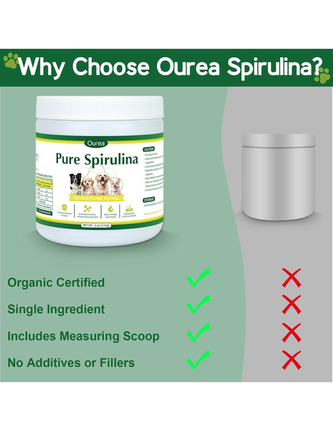 - Nutrición Natural para Perros: Hecho de ingredientes naturales, este polvo de espirulina orgánica certificada es rico en fitonutrientes saludables, antioxidantes, aminoácidos, aceites omega y más para proporcionar a su perro vitaminas y nutrientes esenciales que faltan en su dieta diaria. Algas de agua dulce de alta calidad obtenidas de la fuente, sin aditivos, sin rellenos, sin colores o sabores artificiales.
