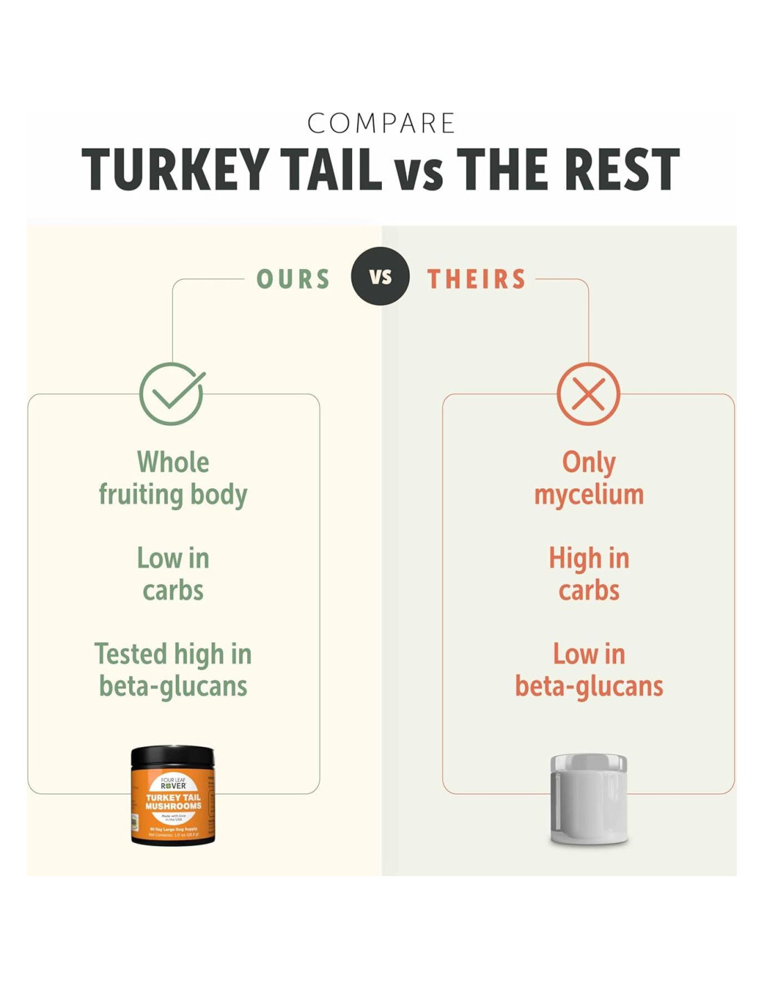 - SOPORTE INMUNE NATURAL: La cola de pavo es el suplemento de hongo más poderoso para perros. Contiene beta-glucanos únicos (PSP y PSP) que apoyan un sistema inmune fuerte.