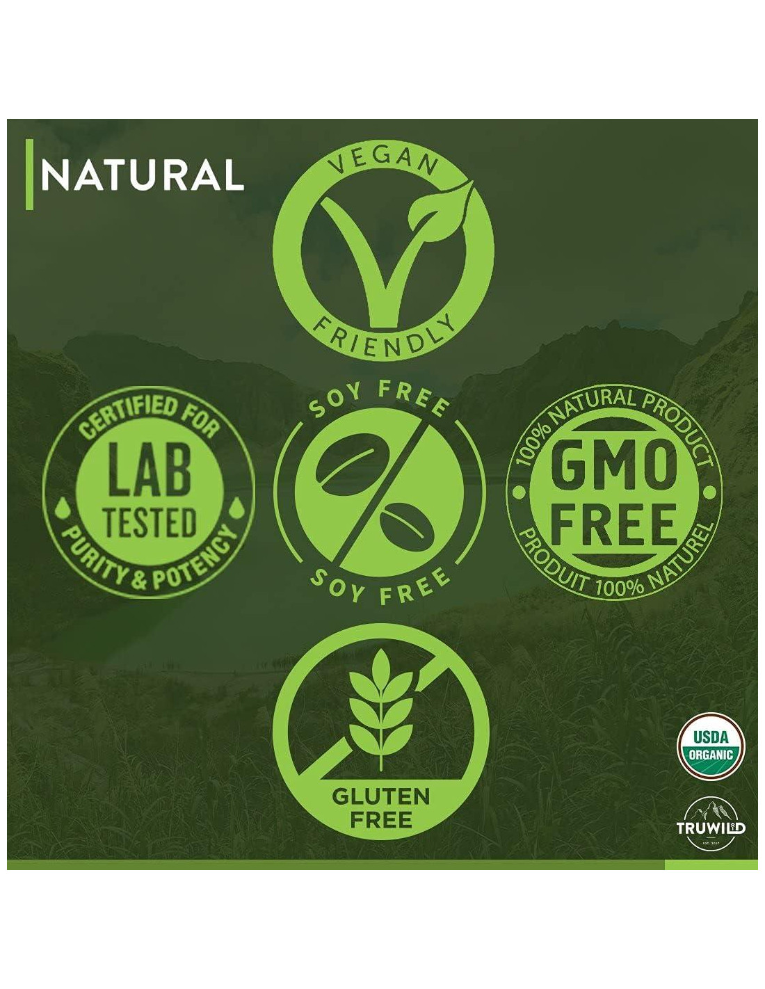 - NUTRICIÓN TOTALMENTE NATURAL SIN NADA QUE OCULTAR: TRUWILD cree que llevar tu cuerpo al siguiente nivel siempre se ha encontrado en la naturaleza, no en un laboratorio. Sin ingredientes sintéticos, rellenos o químicos, Wild Greens es libre de gluten, vegano, no OGM y hecho en EE. UU.