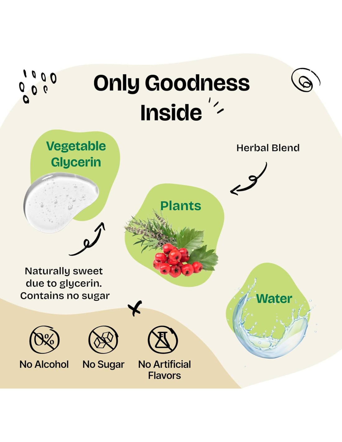 - Fórmula Limpia: Nuestra mezcla de hierbas, agua purificada y glicerina crean una fórmula limpia, libre de azúcar, alcohol, conservantes, colorantes artificiales o ingredientes de origen animal.